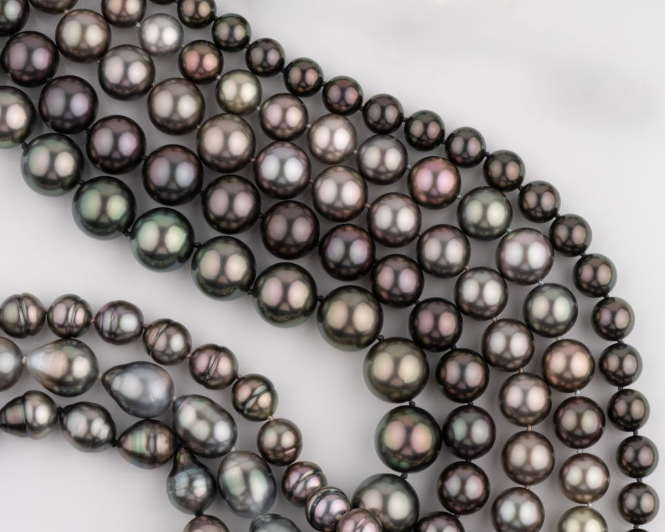 These strands show the full range of natural Tahitian color, from classic silver-gray to deep peacock and darker tones. Each is hand-knotted on silk and can be finished to your preferred length or clasp style.