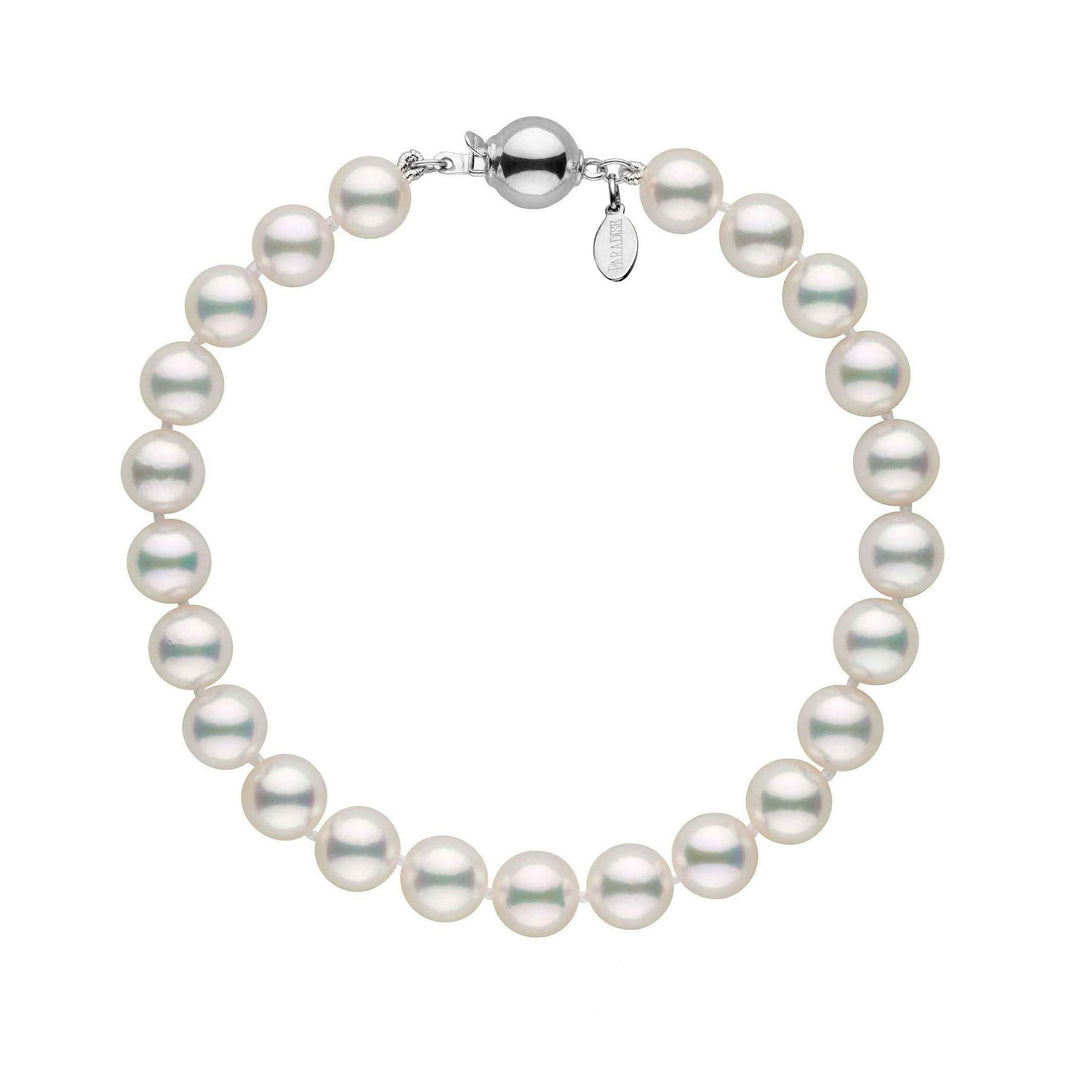 The pearls are individually hand-knotted on color-matching silk thread so that no two pearls ever rub against each other, and if the bracelet ever snaps, you won't lose a single pearl. The clasp is composed of solid 14 karat gold with a safety catch mechanism, ensuring your pearls always stay safe and secure.