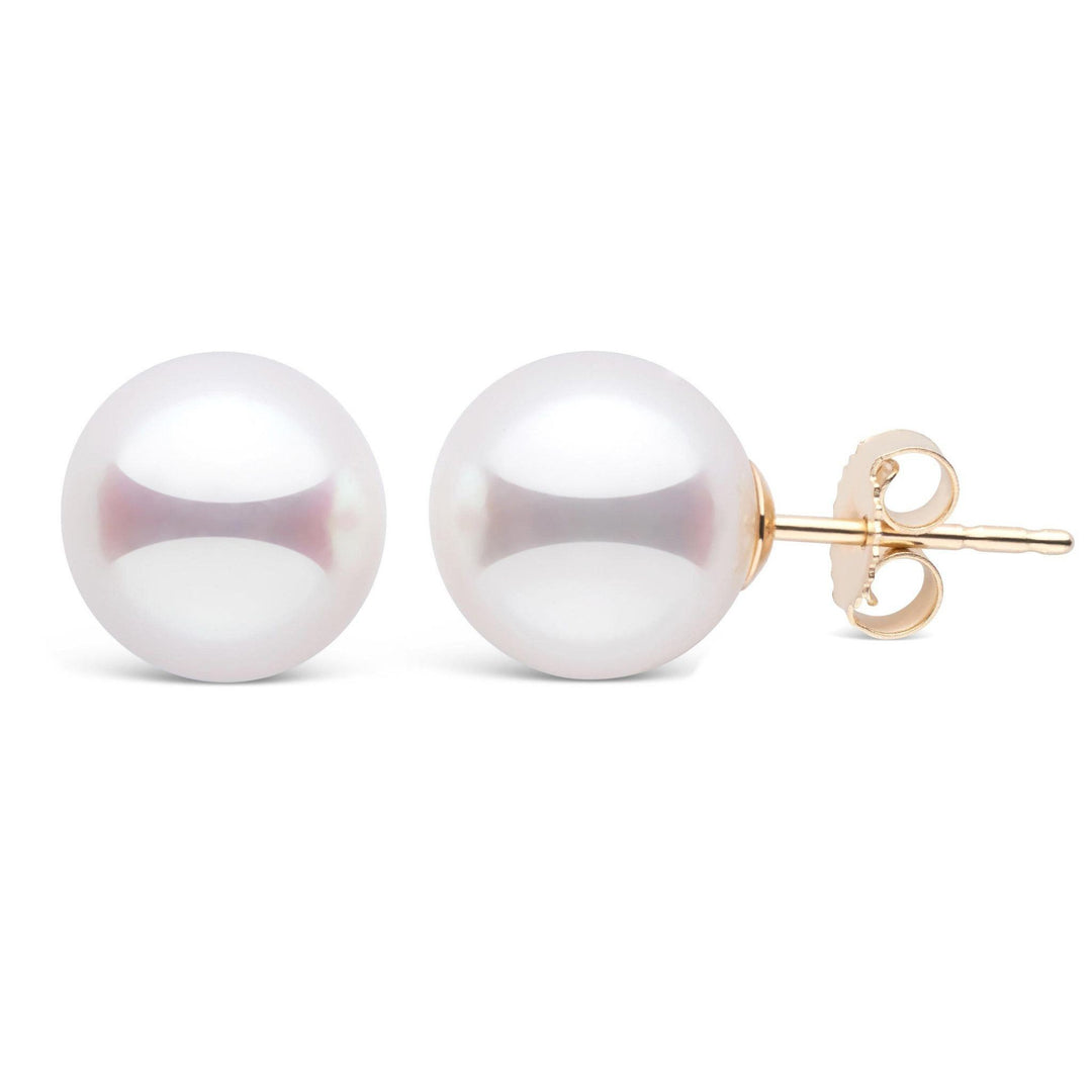 9.0-9.5 mm White Akoya AAA Pearl Stud Earrings Yellow Gold