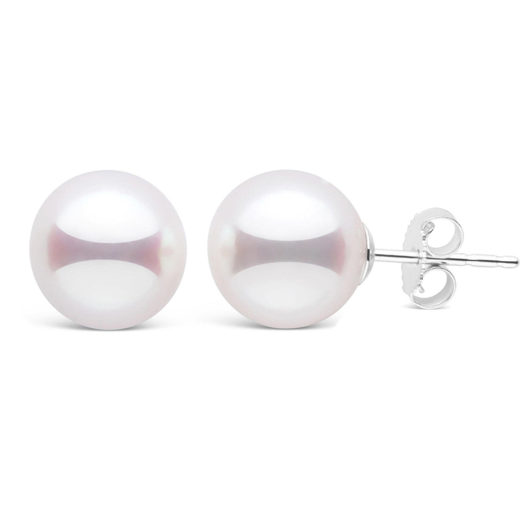 9.0-9.5 mm White Akoya AAA Pearl Stud Earrings White Gold