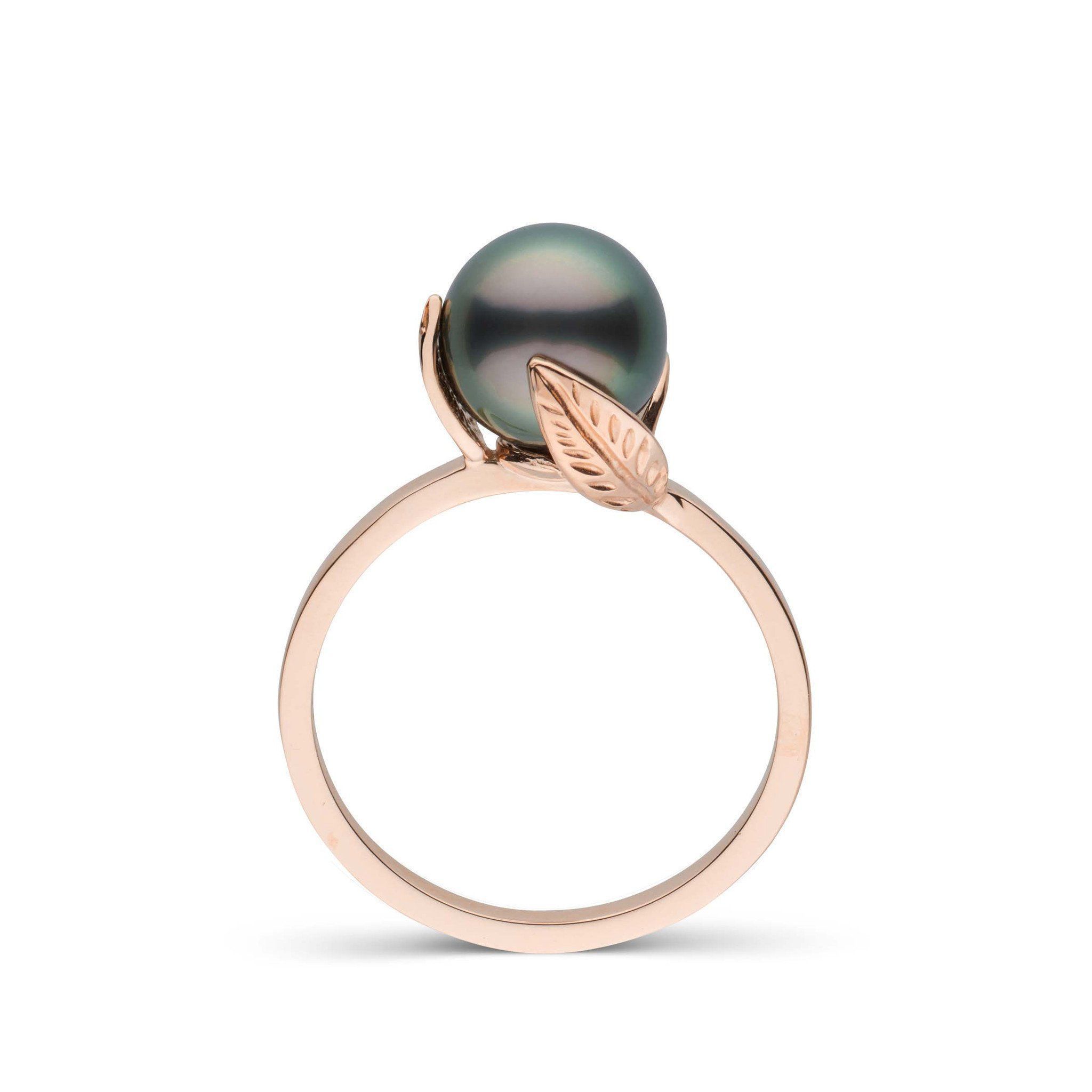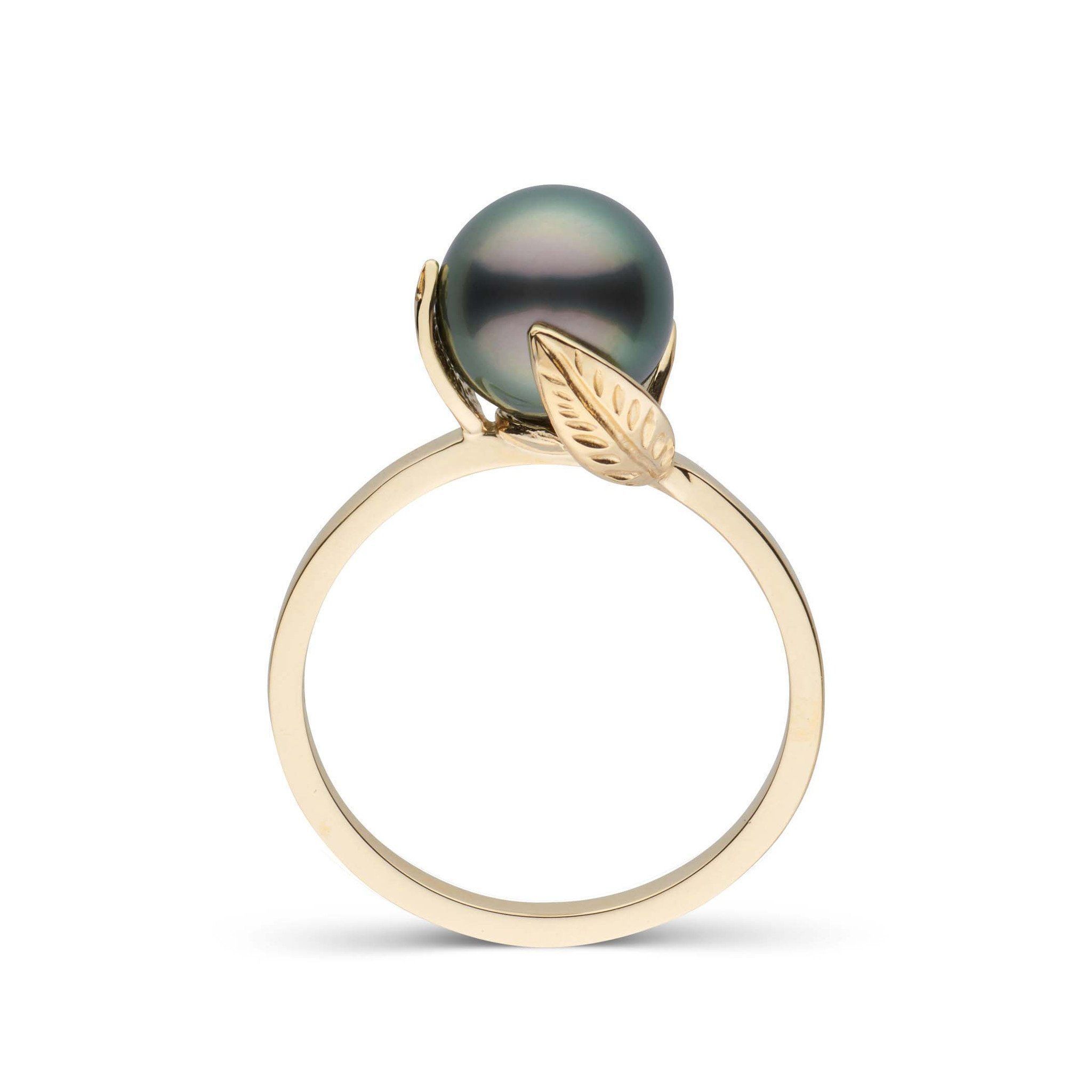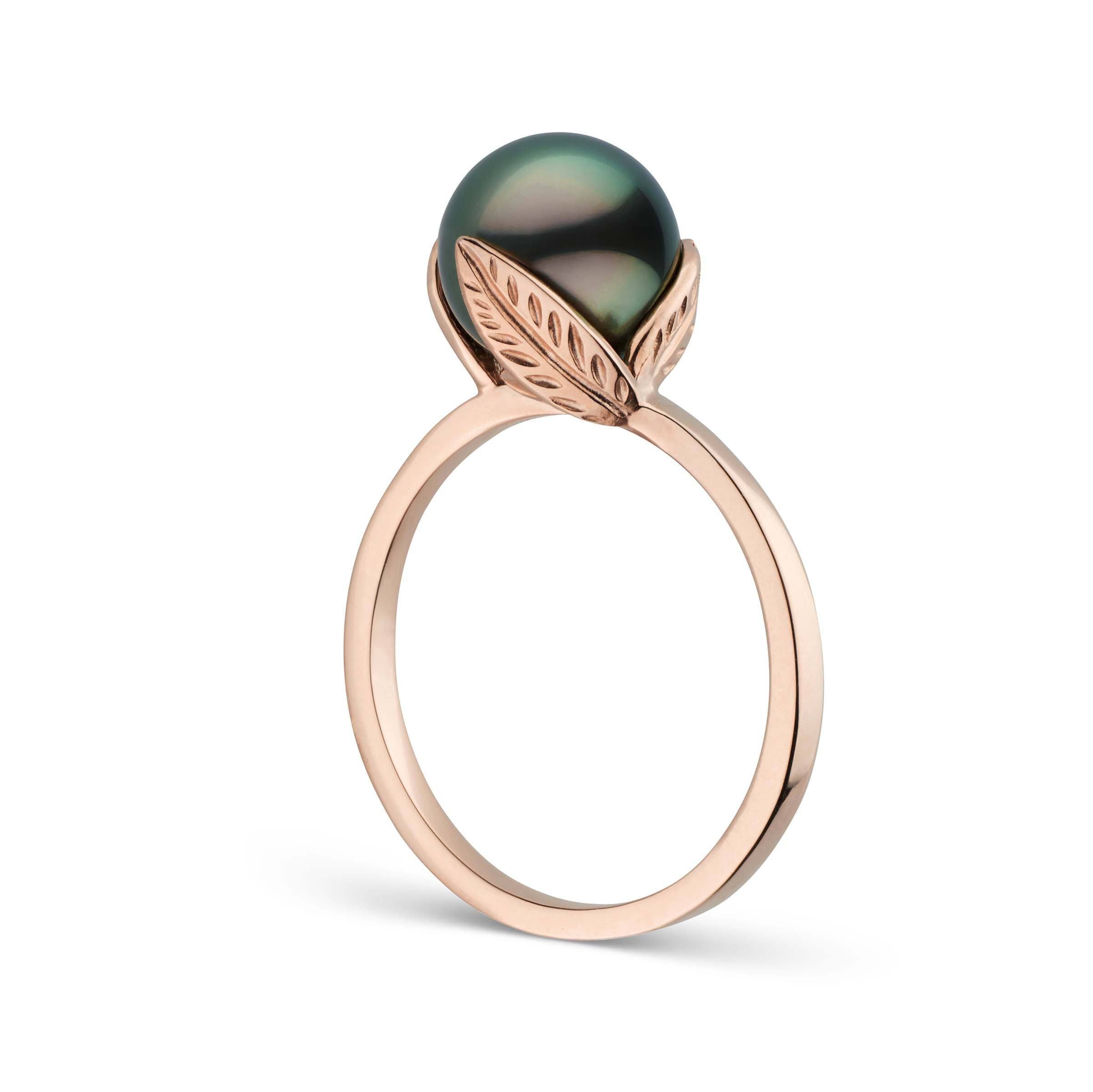 The Leaf Collection Tahitian pearl ring is one of our most popular ring designs. The ring features an 8.0-9.0 mm, AAA quality Tahitian pearl with three leaves delicately wrapping around the curvature of the pearl, giving the ring a lovely, organic look.