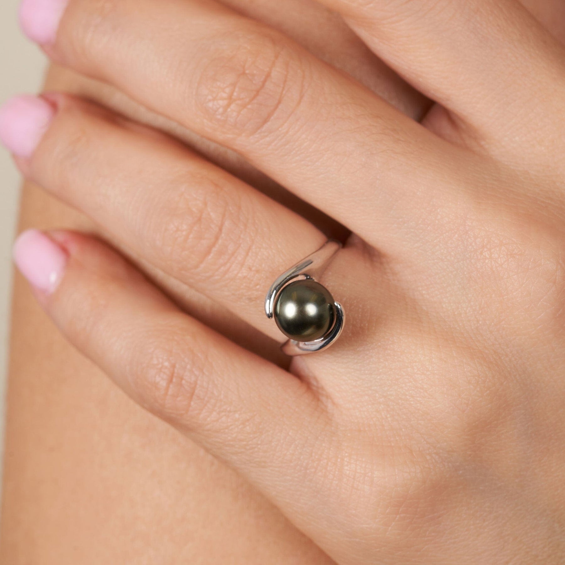 Embrace Collection Tahitian Pearl Ring White Gold on model 1