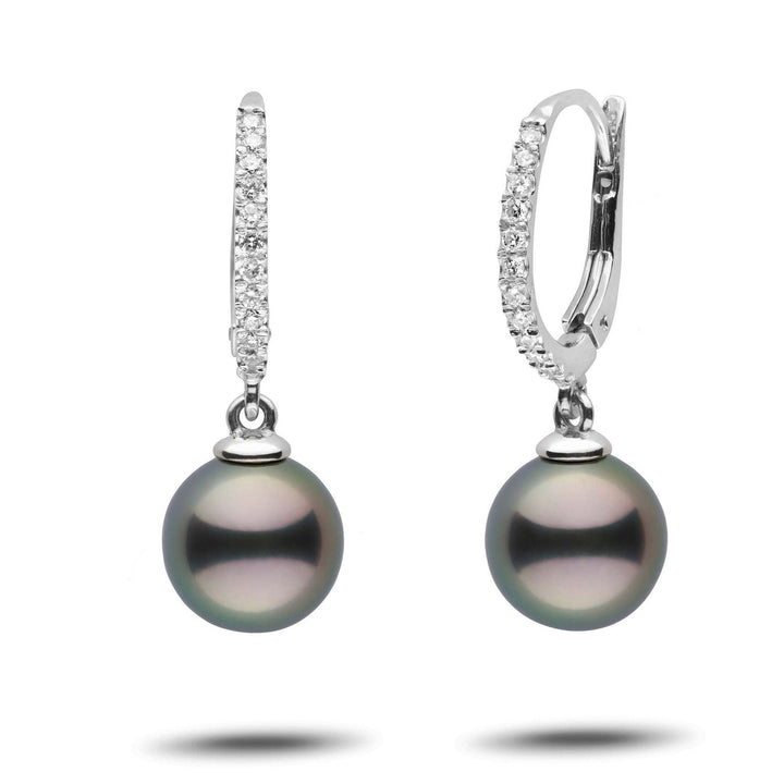 This popular earring design features AAA-quality, round Tahitian 9.0-10.0 mm pearls dangling below an impressive 14-karat gold setting with 11 sparkling diamonds on each ear. There are 22 diamonds with a total carat weight of 0.22 cttw.
