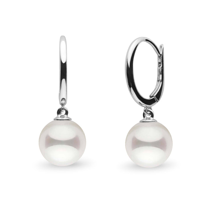 Solid Eternal Collection White Akoya 8.5-9.0 mm Pearl Dangle Earrings