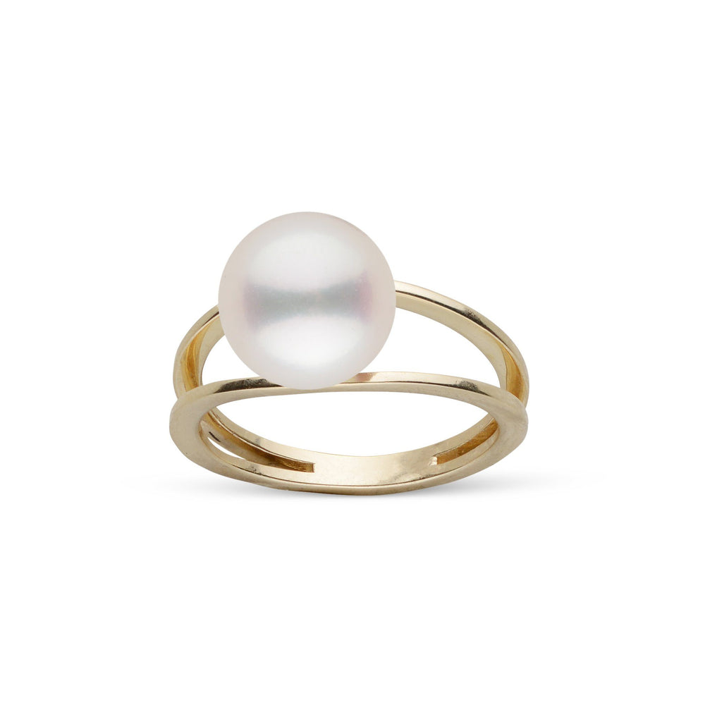 The gracefully curved solid gold and diamond band elegantly supports the lustrous 10.0-11.0 mm Tahitian pearl.