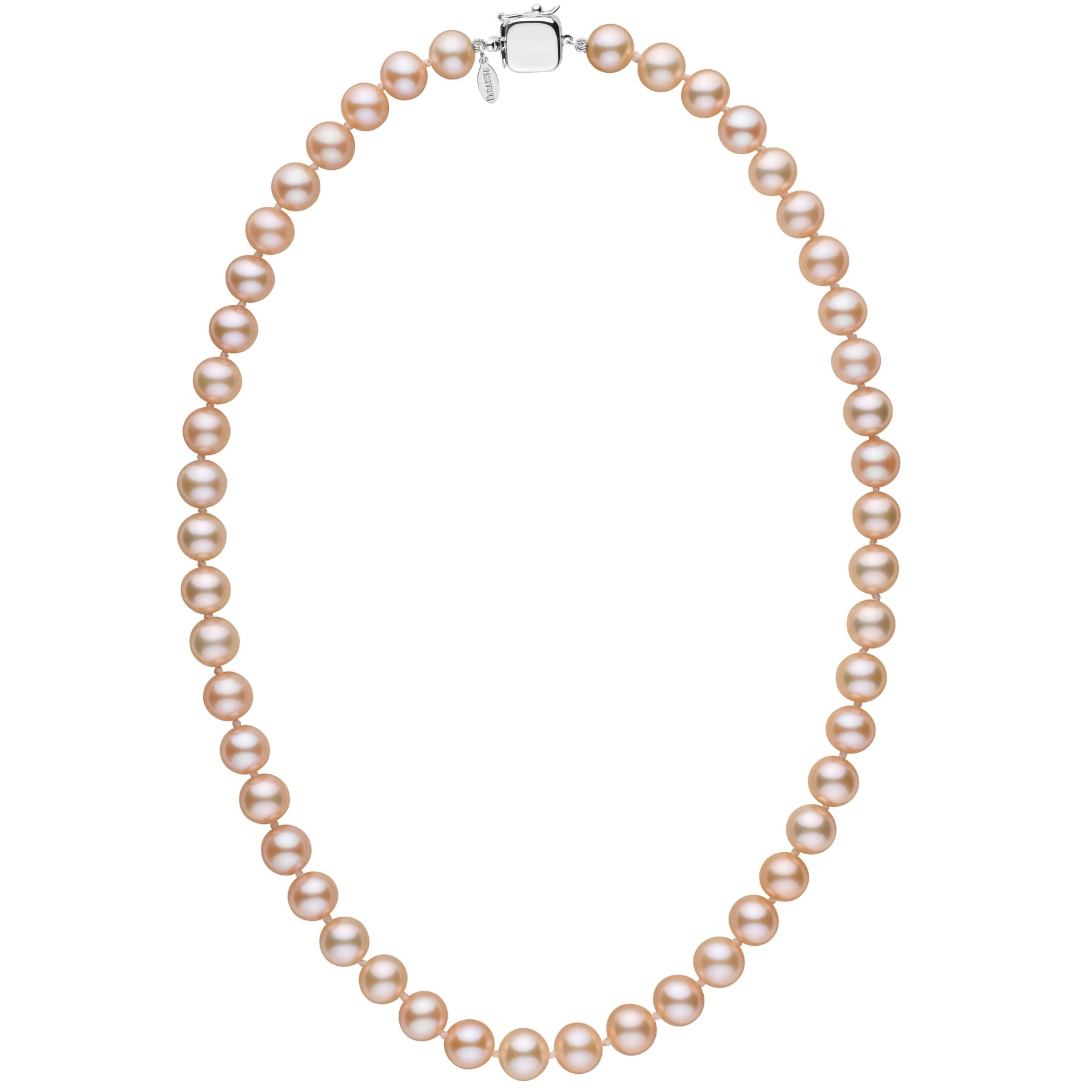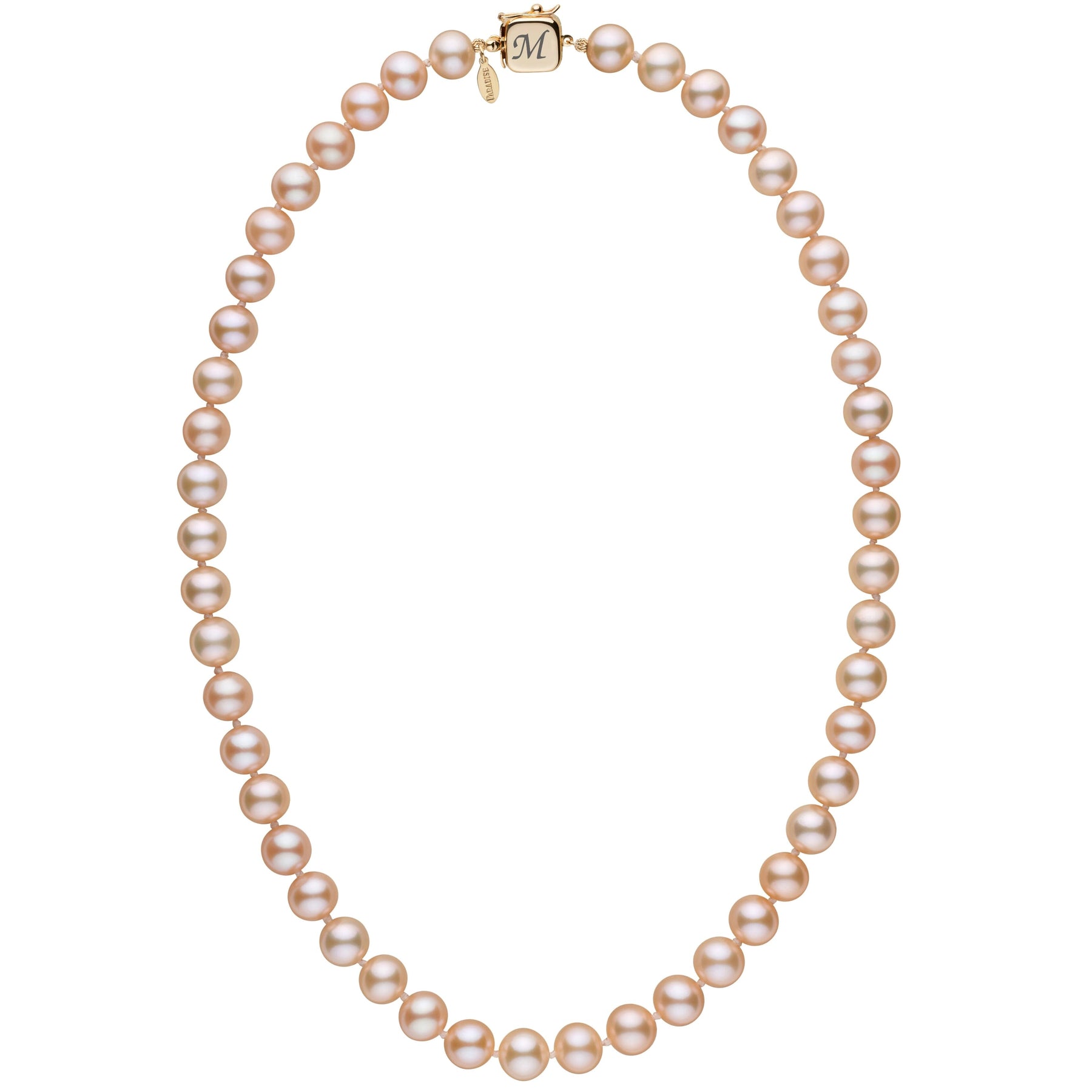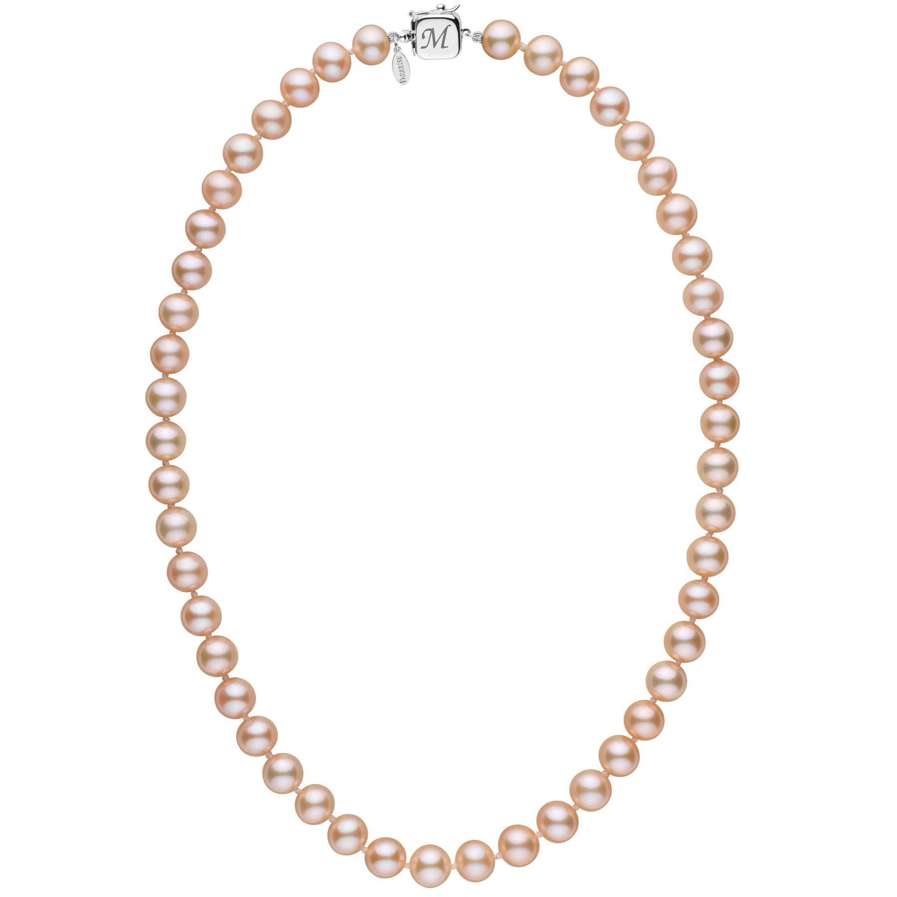 Personalized 8.5-9.0 mm Pink to Peach Freshadama Freshwater Pearl Square Clasp Necklace