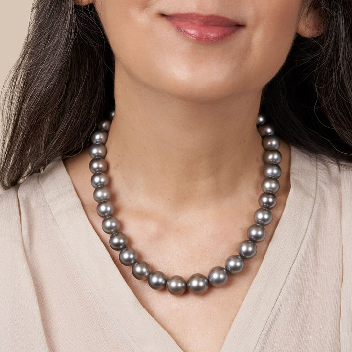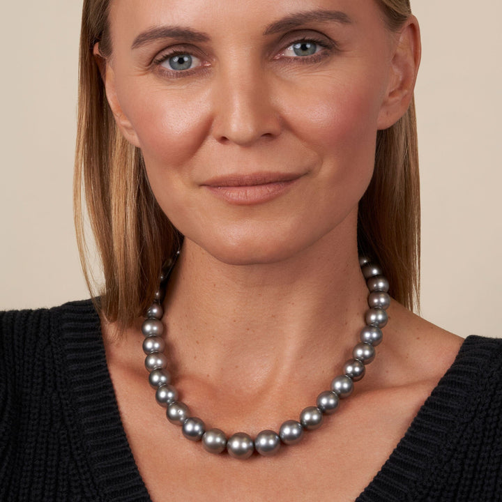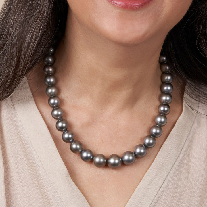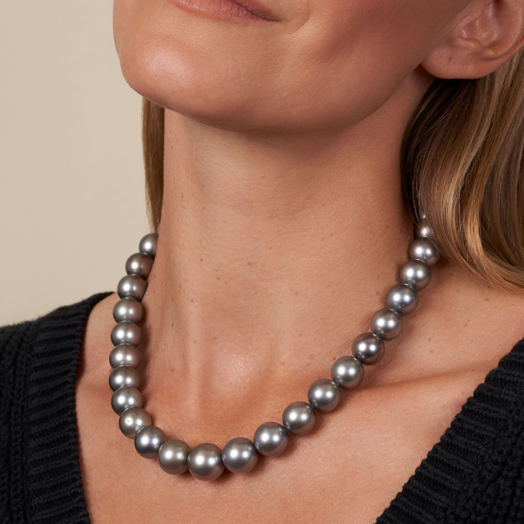 This one-of-a-kind necklace is composed of round, AA+/AAA quality Tahitian pearls measuring 12.0-14.8 mm in diameter and approximately 18 inches in length including the clasp.
