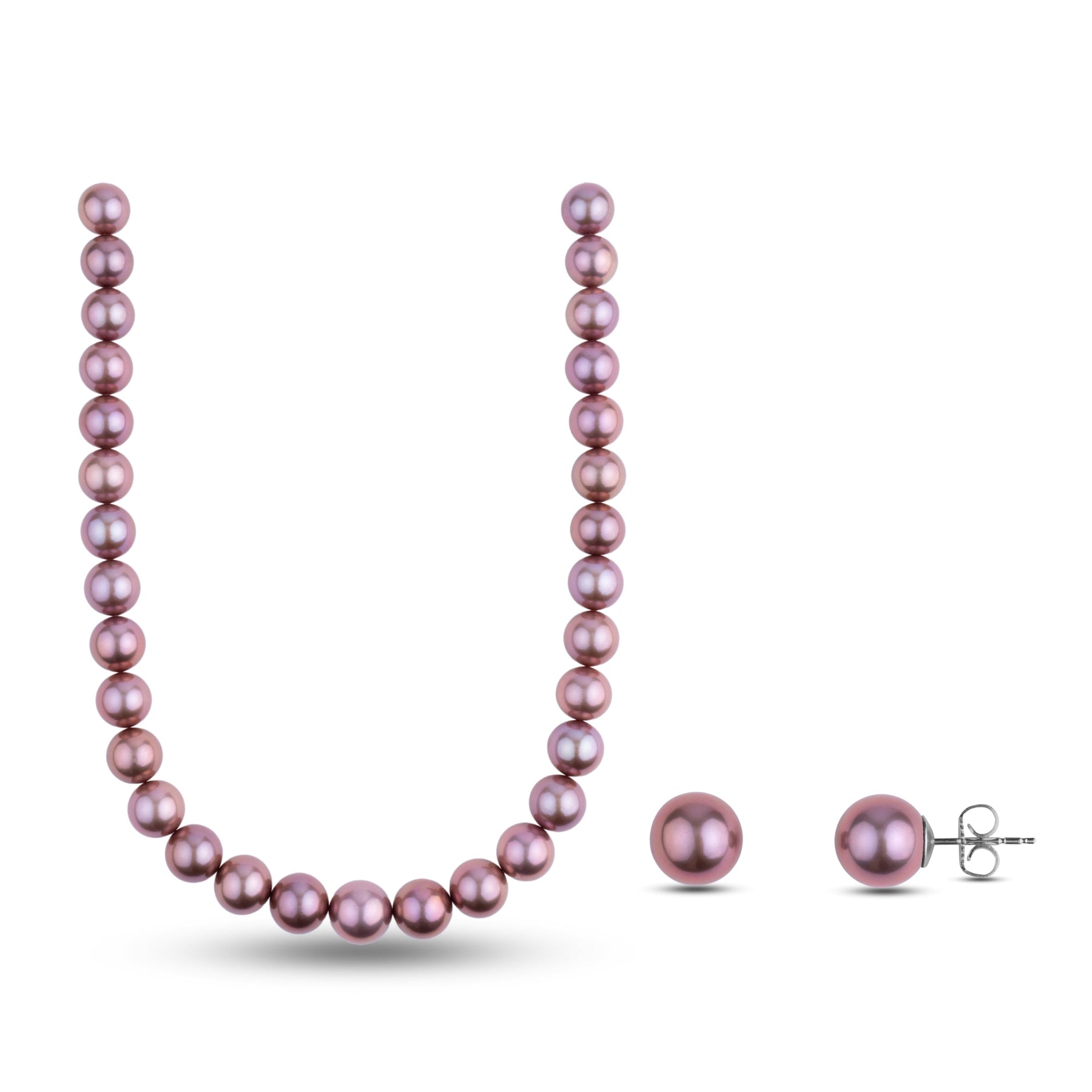 The pearls exhibit striking natural colors. The bodycolor would fall into the lavender category, but additional tones of copper and gold that show in the orient.