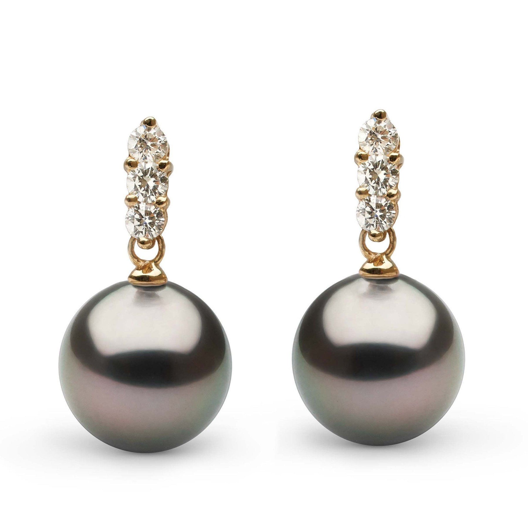 With three sparkling diamonds adorning each Tahitian 11.0-12.0 mm pearl, our Trio Collection earrings will impress even the most discerning pearl connoisseur. The high quality VS1-G diamonds have a total weight of 0.40 carats, and are masterfully set in your choice of 14 karat yellow, white or rose gold settings.