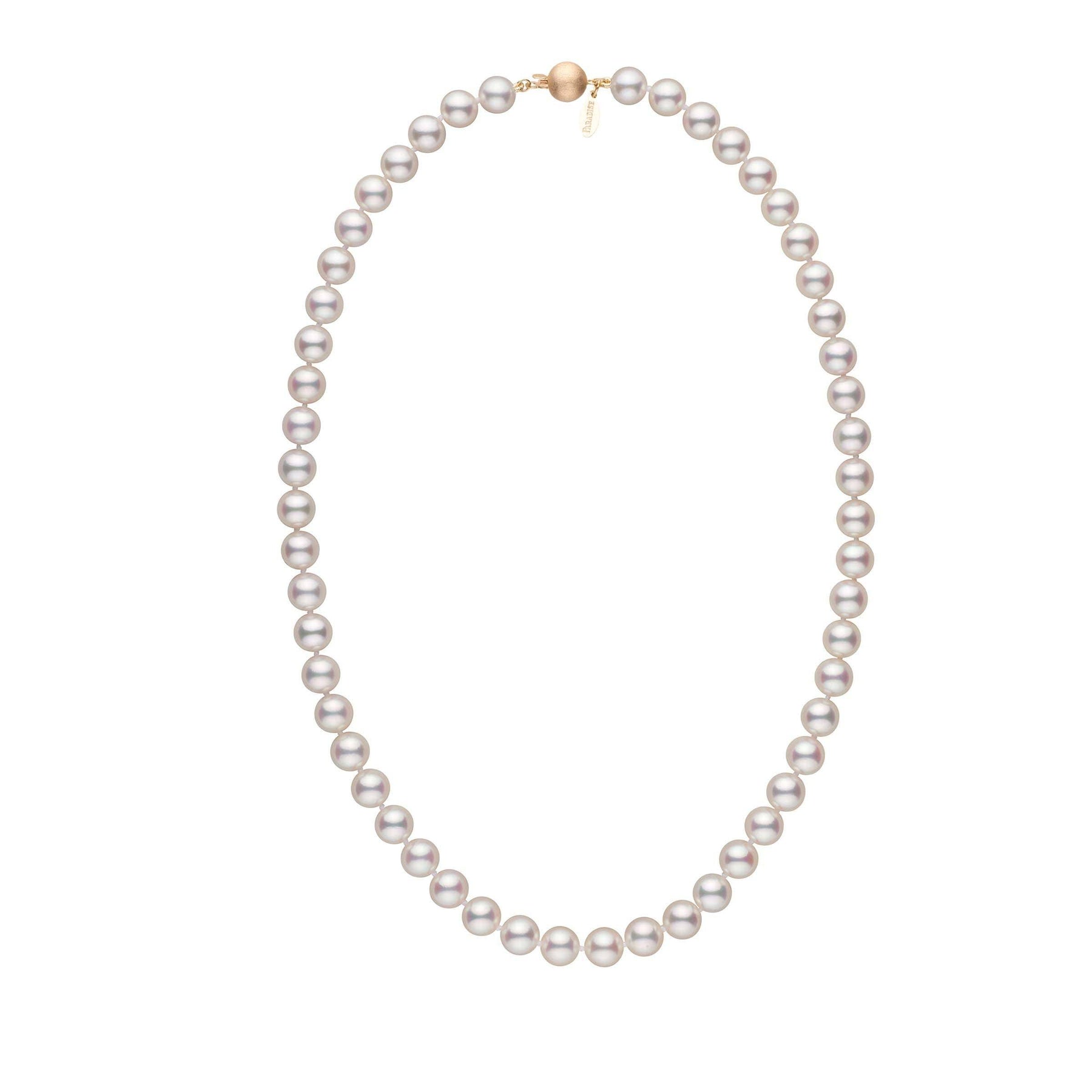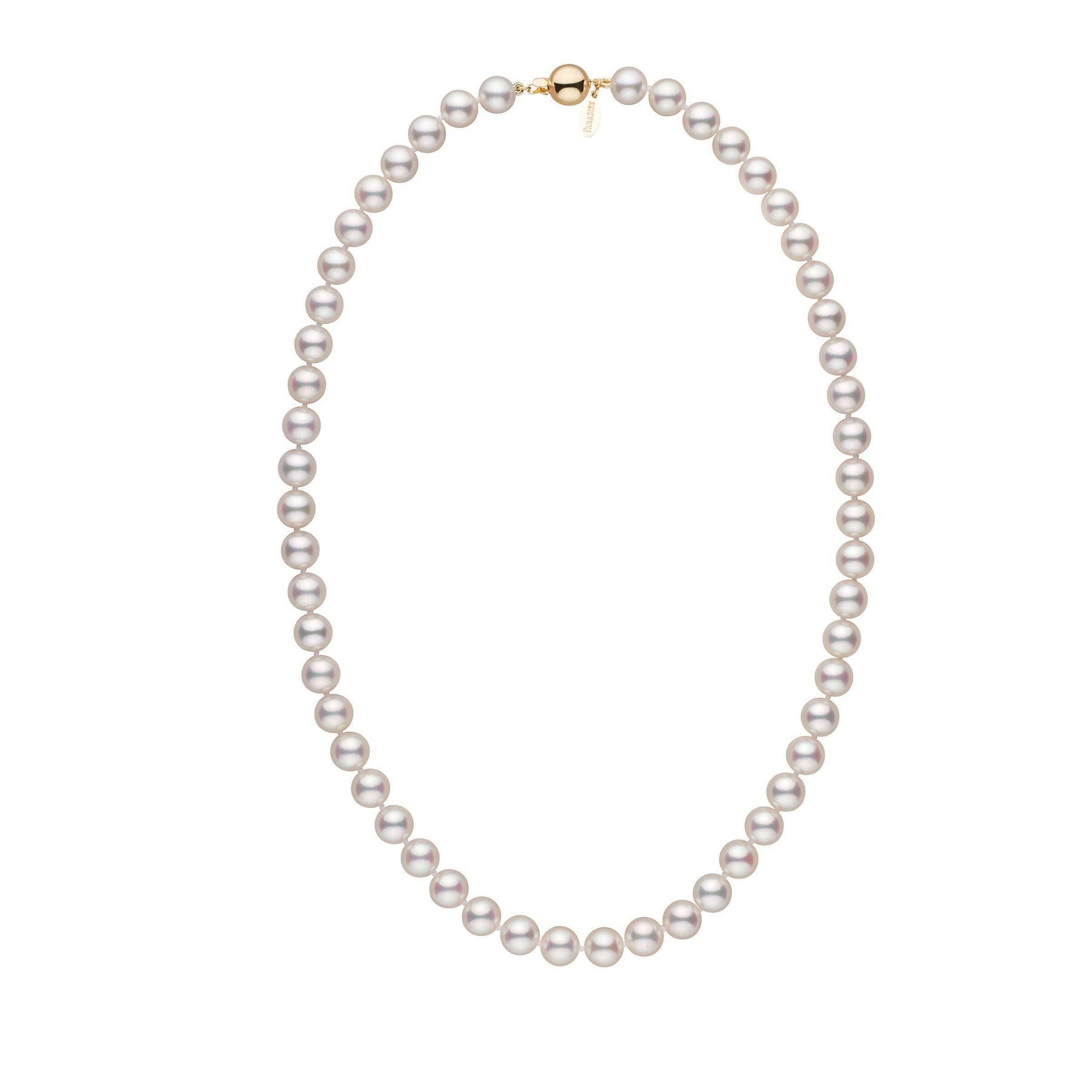 7.5-8.0 mm 18 inch White Hanadama Akoya Pearl Necklace yellow gold polished