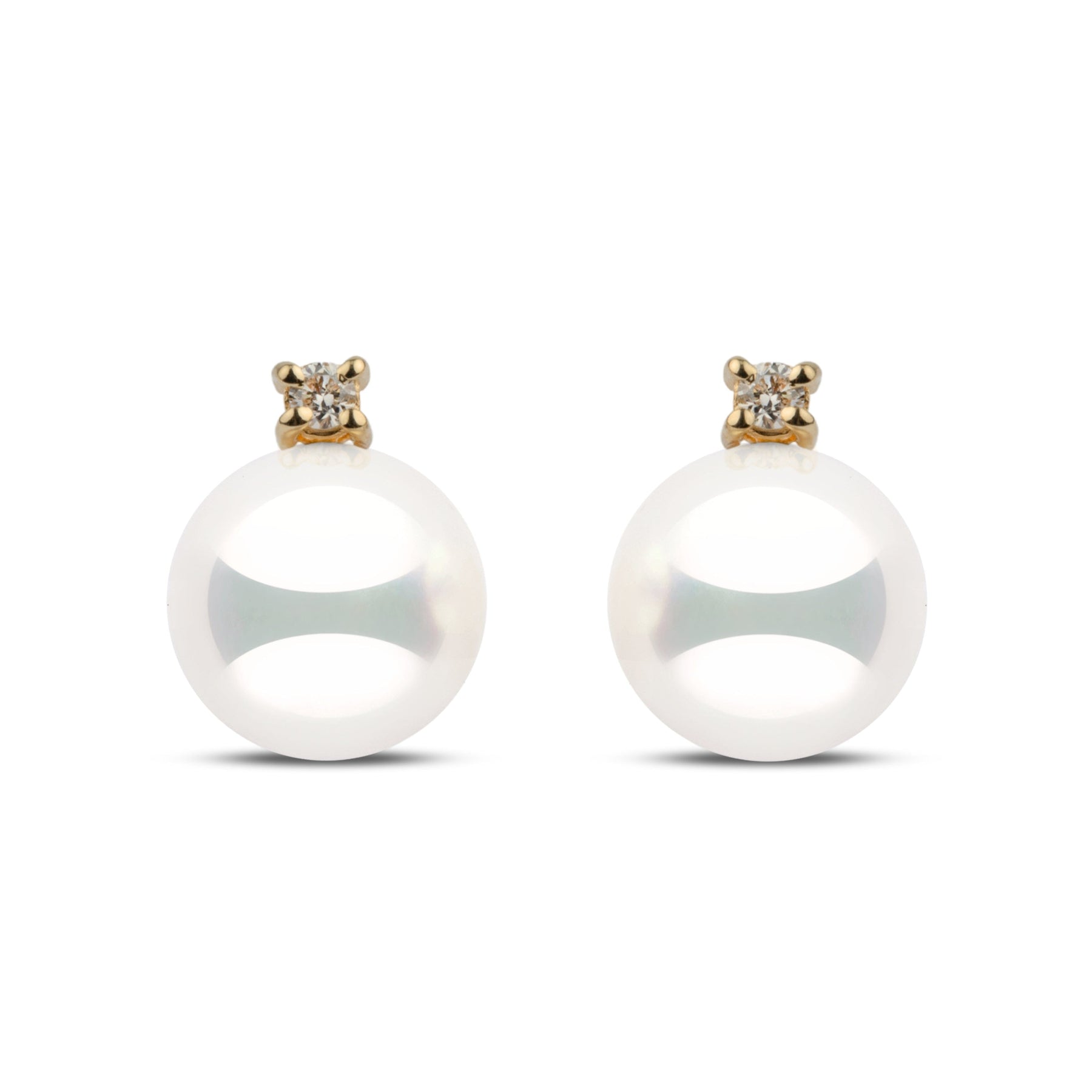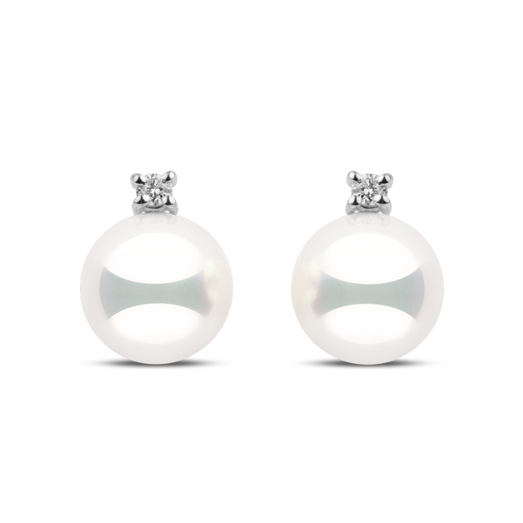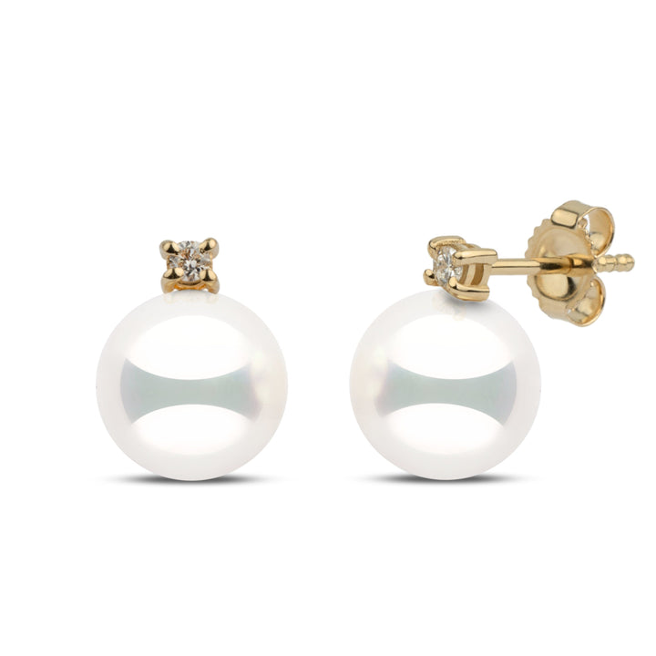 These earrings from our Starlight Collection feature the rarest natural white 8.5–9.0 mm Hanadama akoya pearls. Perfectly round with luminous luster and smooth, bright surfaces, each pearl is accented with round brilliant-cut G-VS1 diamonds totaling 0.06 cttw, set in solid 14k gold.