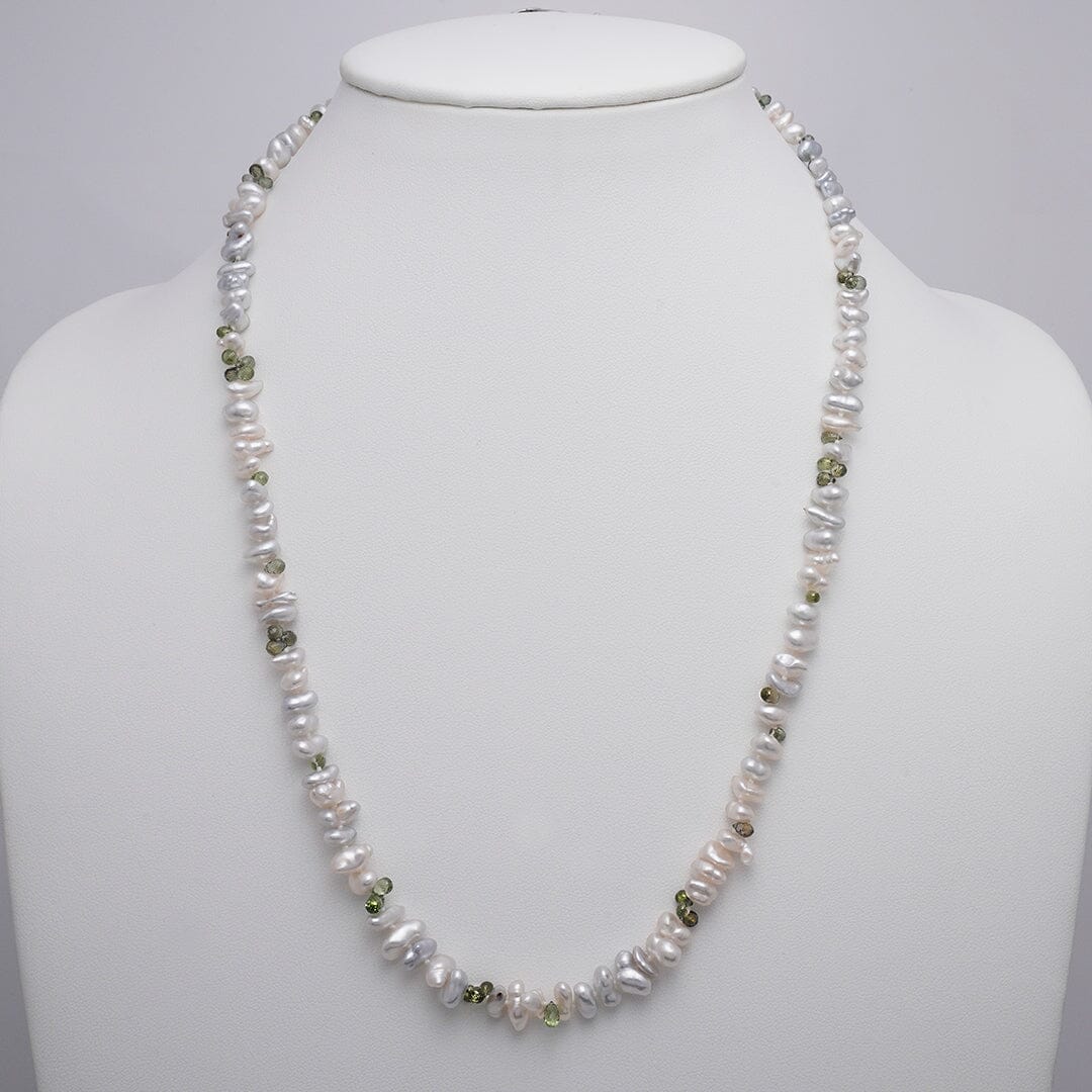 5.5–10.3 mm white South Sea keshi pearl and green sapphire necklace