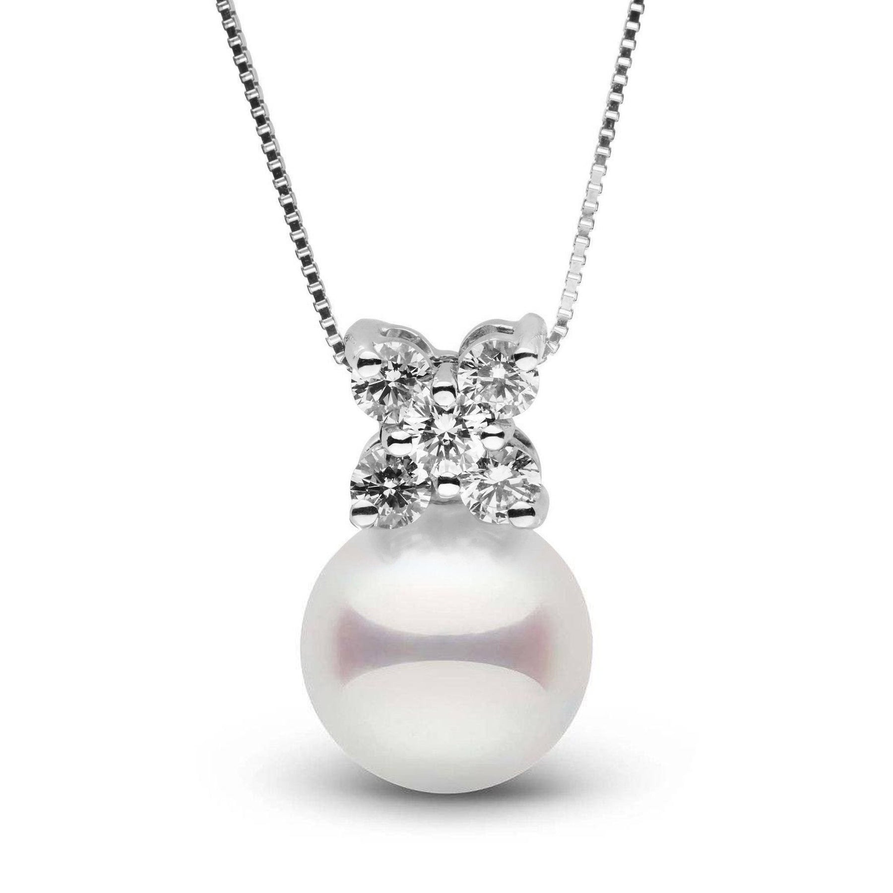 This elegant pendant features a luxurious 9.0-9.5 mm Akoya pearl accented by sparkling 0.33 cttw VS1 G diamonds. A perfect complement to our Kiss Collection earrings, this pendant is a timeless family heirloom in waiting.