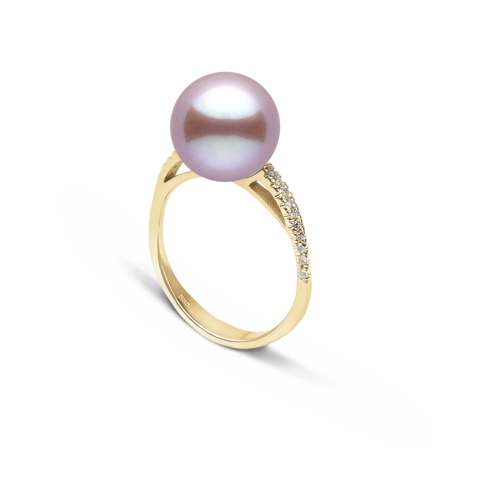 Pirouette Collection 10.0-11.0 mm Lavender Freshadama Pearl and Diamond Ring Yelllow Gold front
