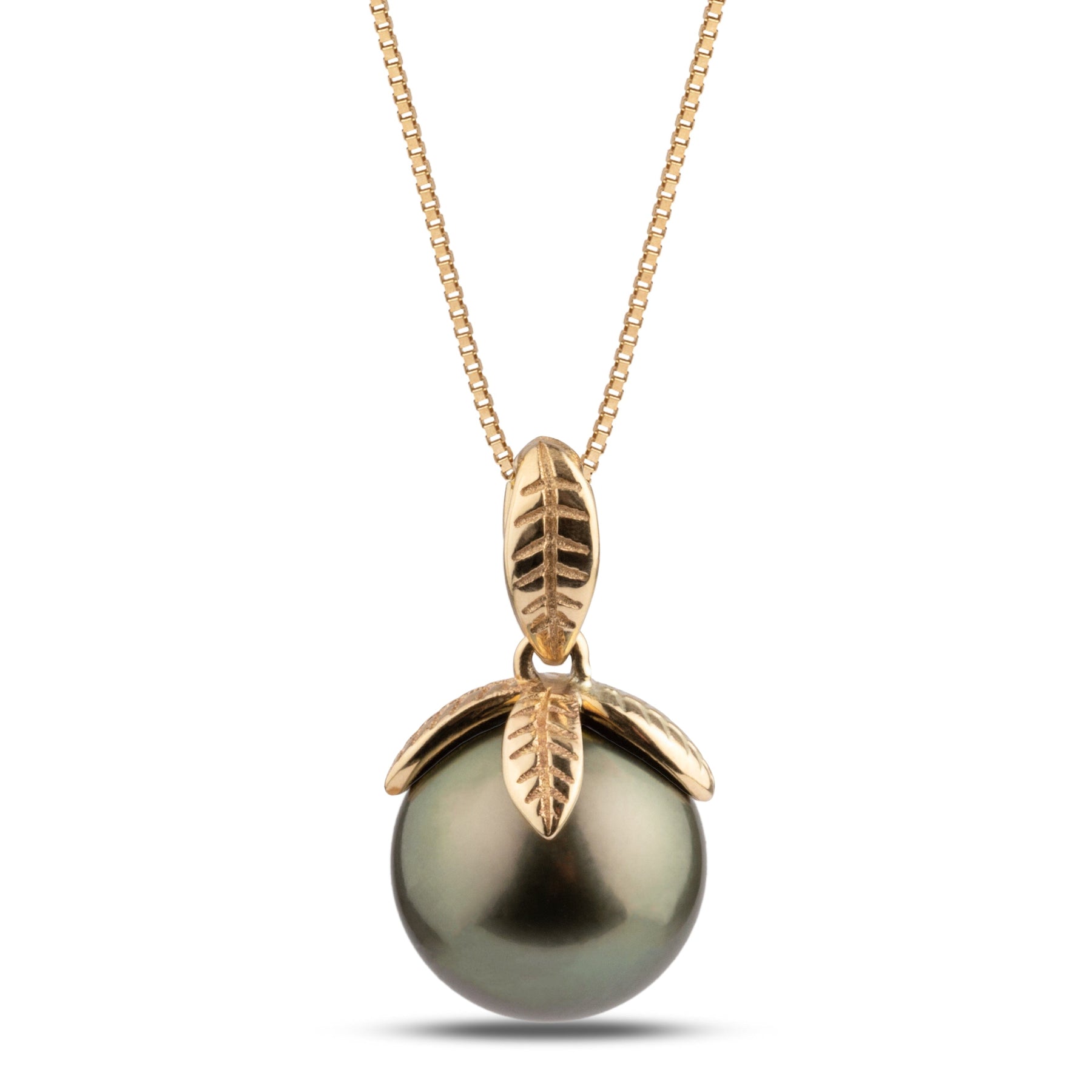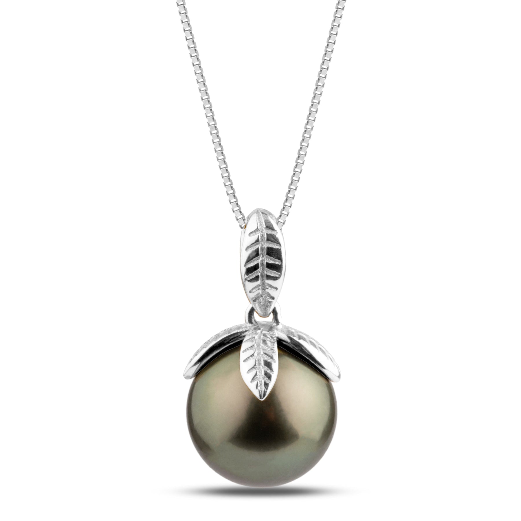 This Leaf Collection 9.0-10.0 mm Tahitian pearl pendant proves beauty and sophistication don’t have to come with a steep price tag. The AAA-rated (highest quality) Tahitian pearl has excellent luster. When other people notice your pendant they will be enthralled by the bright, sharp reflection emanating from the pearl.
