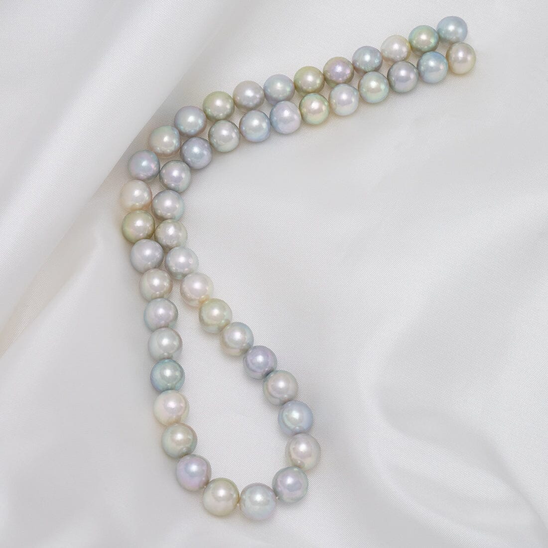 This strand of akoya pearls shows the full spectrum of the rare, non-white akoya pearl colors. The subtle hues range from yellow to blue.