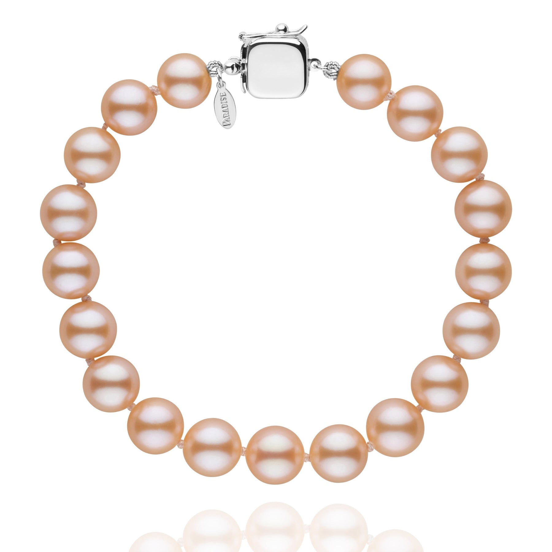 Personalized 8.5-9.0 mm Pink to Peach Freshadama Freshwater Pearl Square Clasp Bracelet