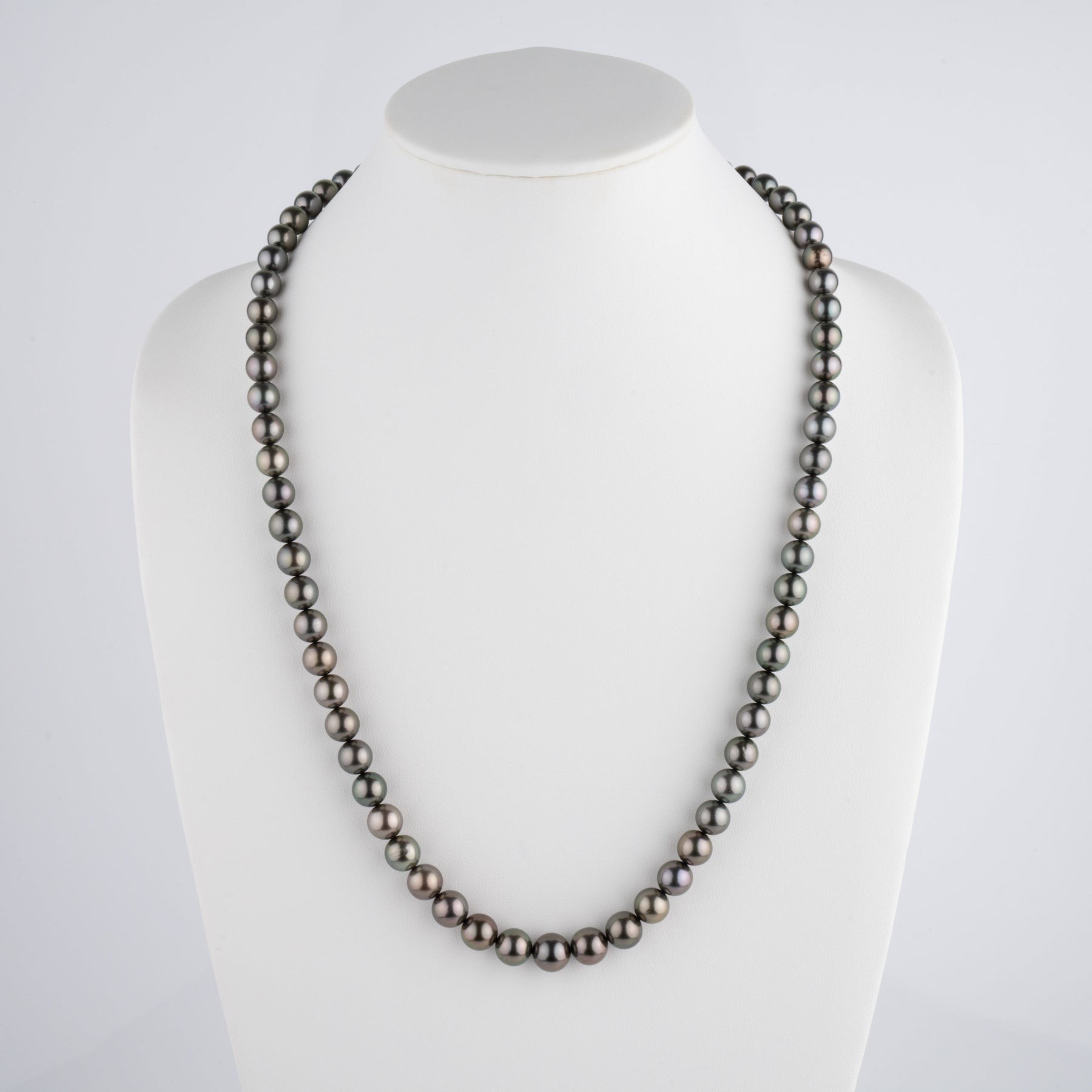 8.4-11.0 mm AA+/AAA Tahitian Round Pearl Necklace, 28 Inches wg