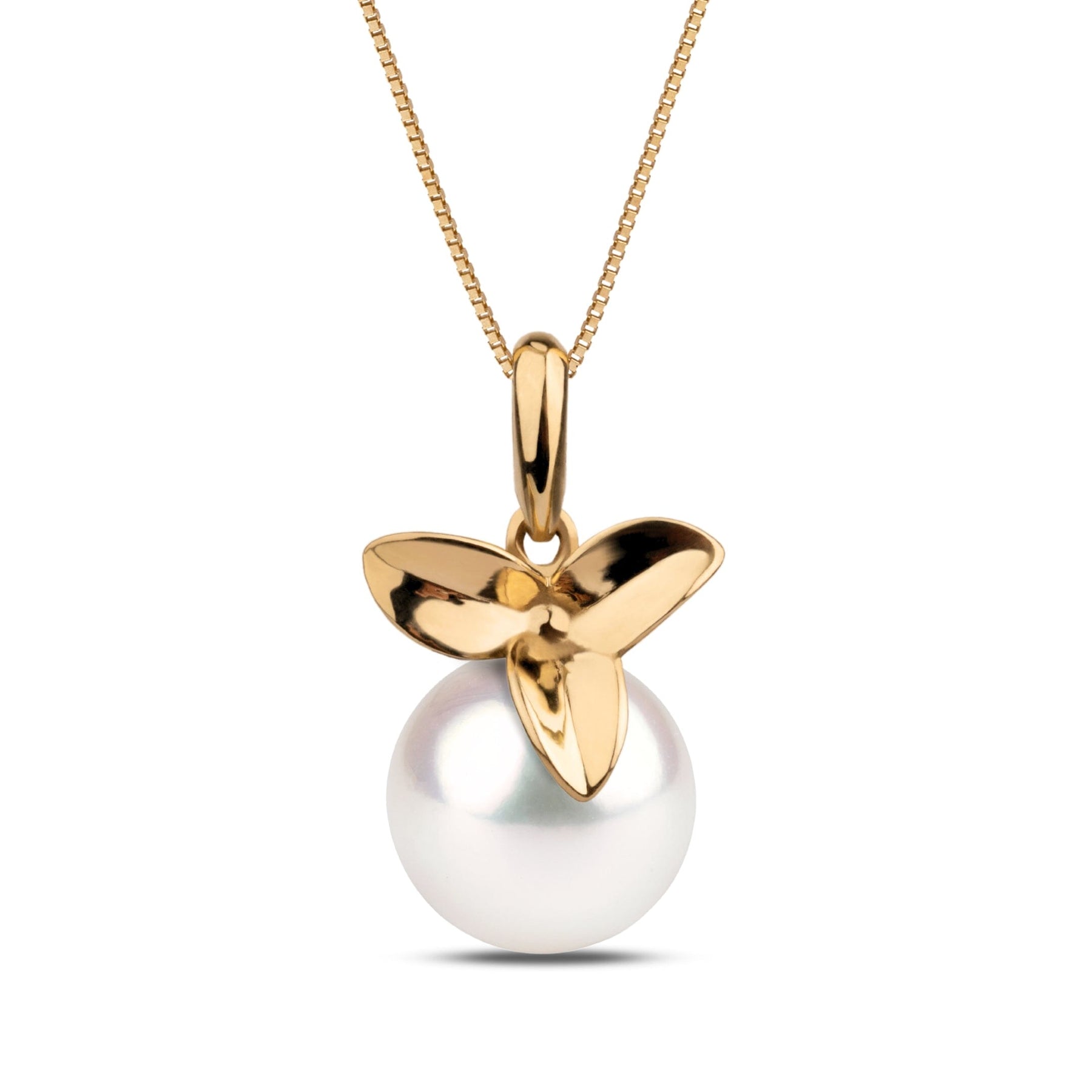 A celebration of refined beauty, our Blossom Pendant showcases the timeless elegance of Japanese Akoya pearls in a graceful, floral-inspired setting. The design is handcrafted in solid 14-karat gold and cradles a luminous 9.0-9.5 mm pearl, chosen for its near-perfect roundness, smooth surface, and mirror-like luster.