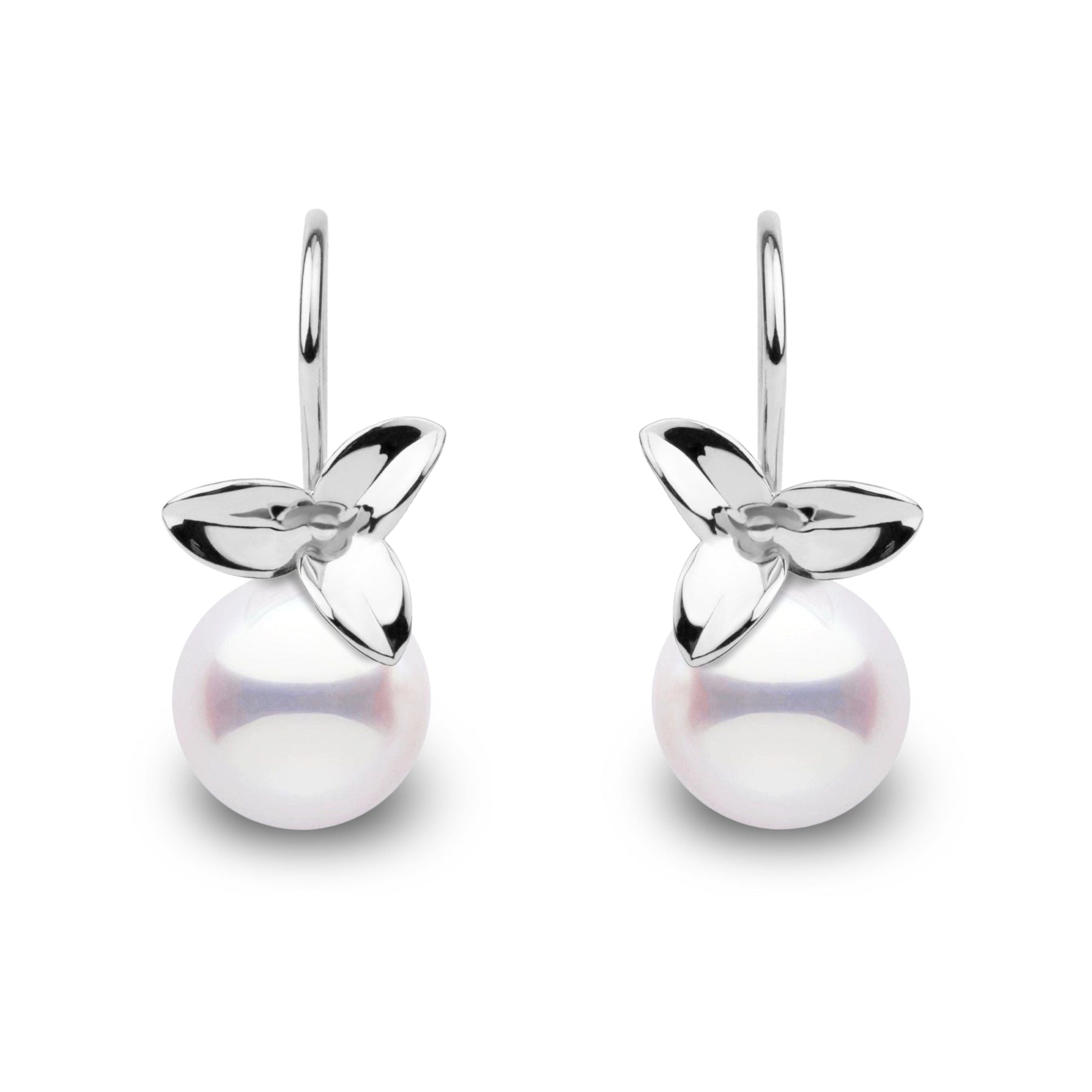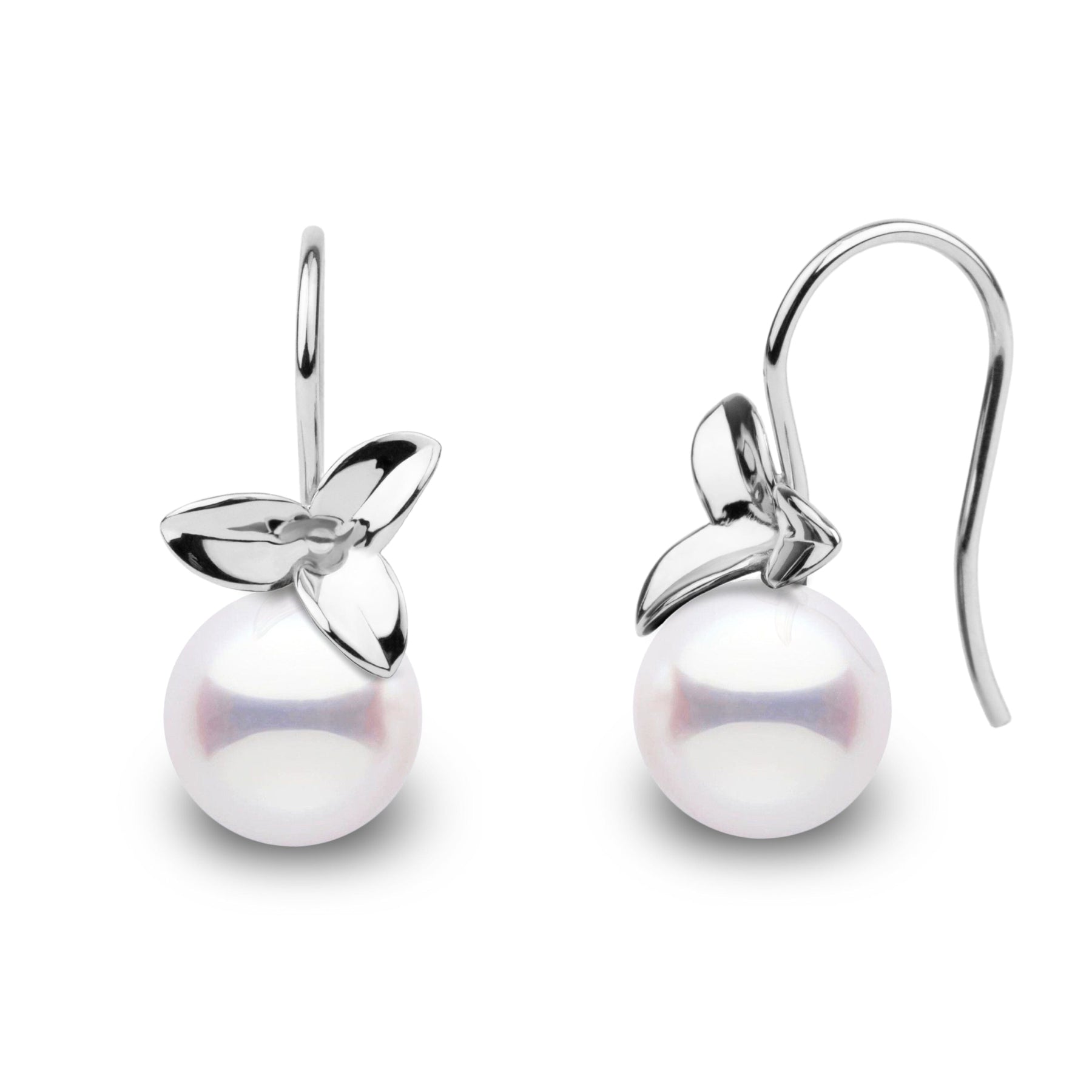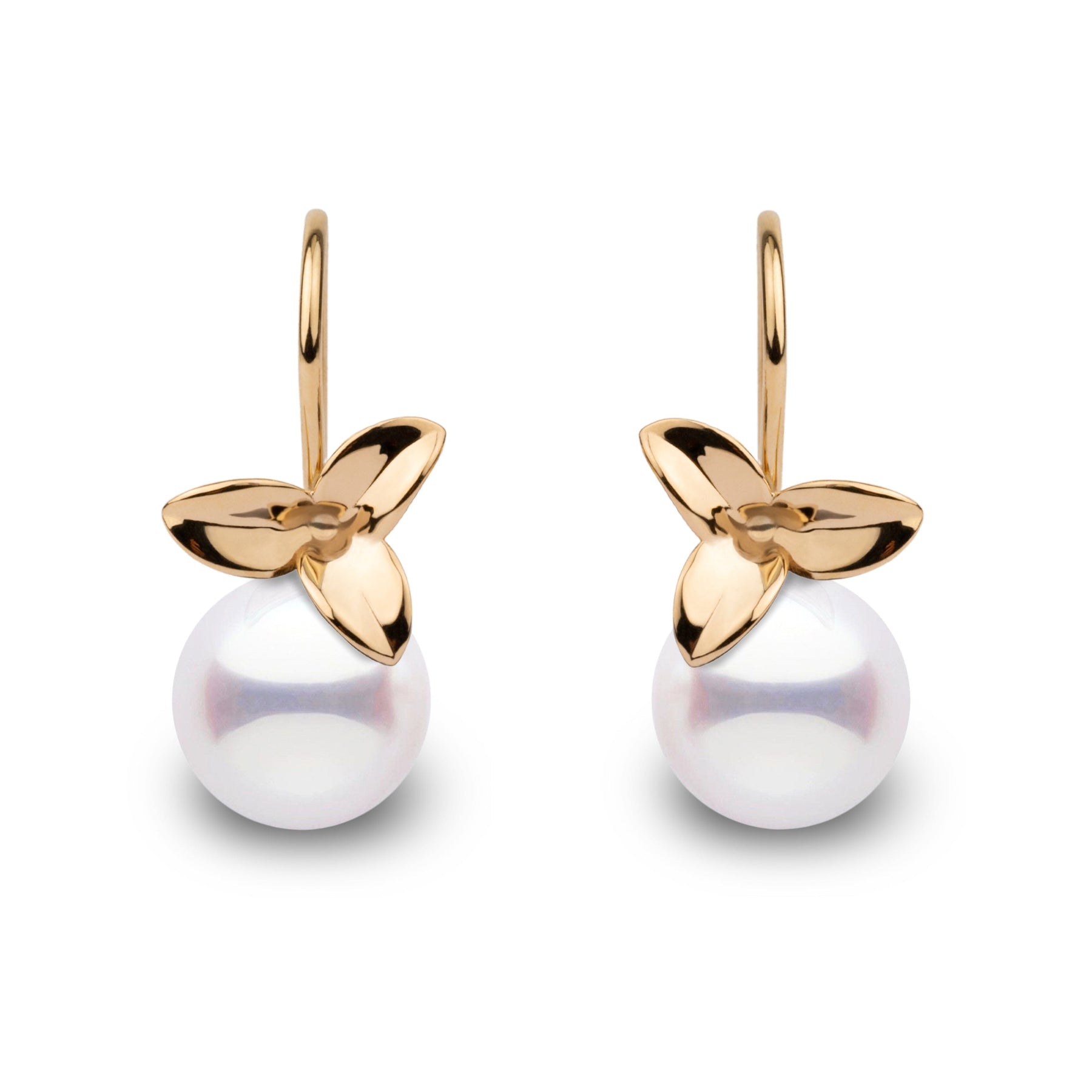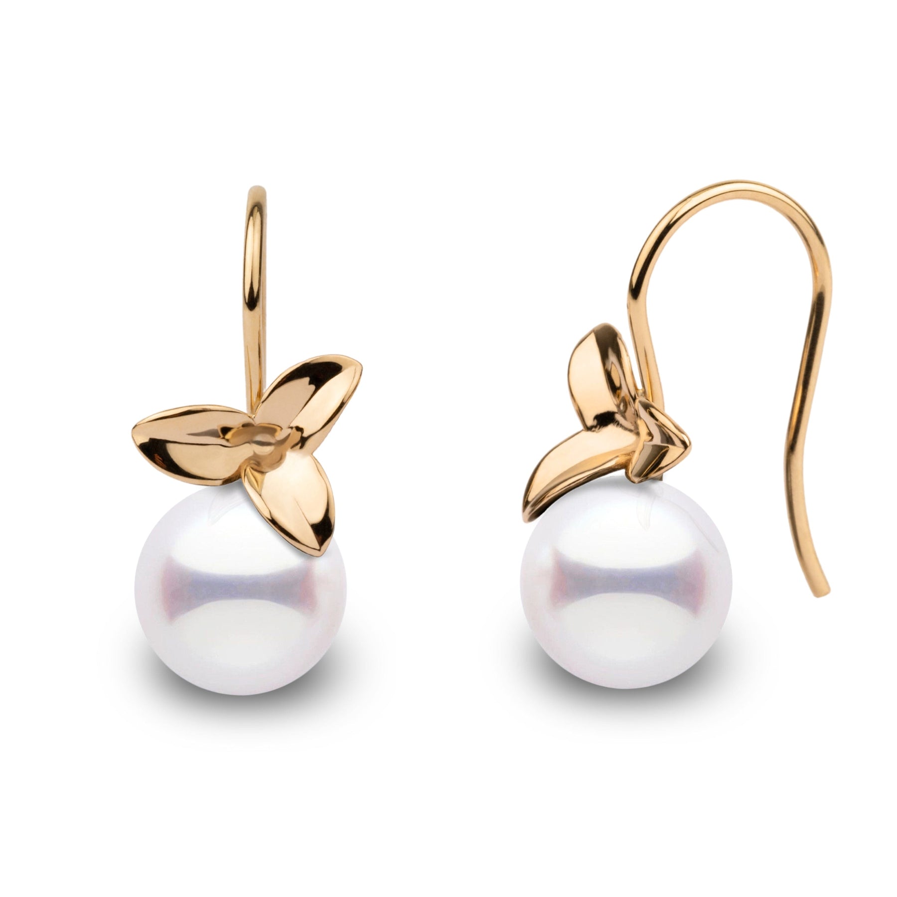 Timeless and refined, our Blossom Earrings highlight the classic beauty of Japanese Akoya pearls in a delicate floral design. Handcrafted in solid 14-karat gold, each earring holds a perfectly matched 9.0–9.5 mm pearl—prized for its bright white color, mirror-like luster, and flawlessly round shape.