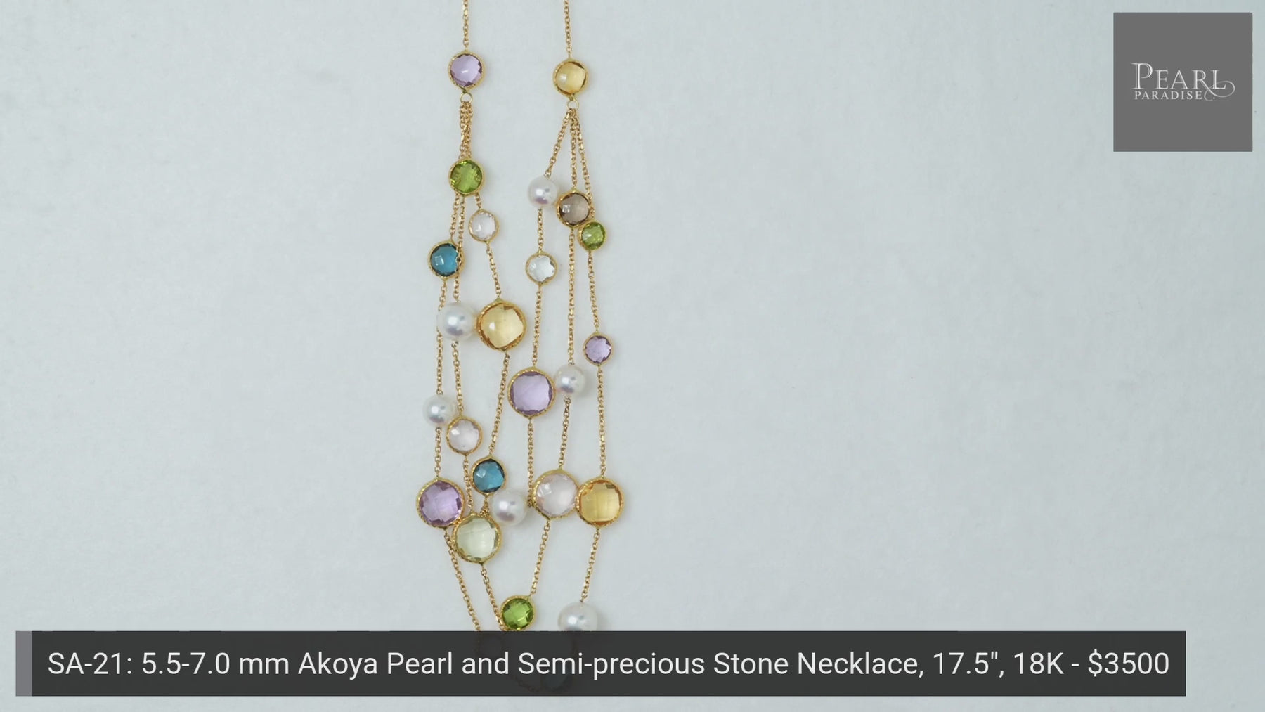 SA-21: 5.5-7.0 mm Akoya Pearl and Semi-precious Stone Necklace, 17.5", 18K