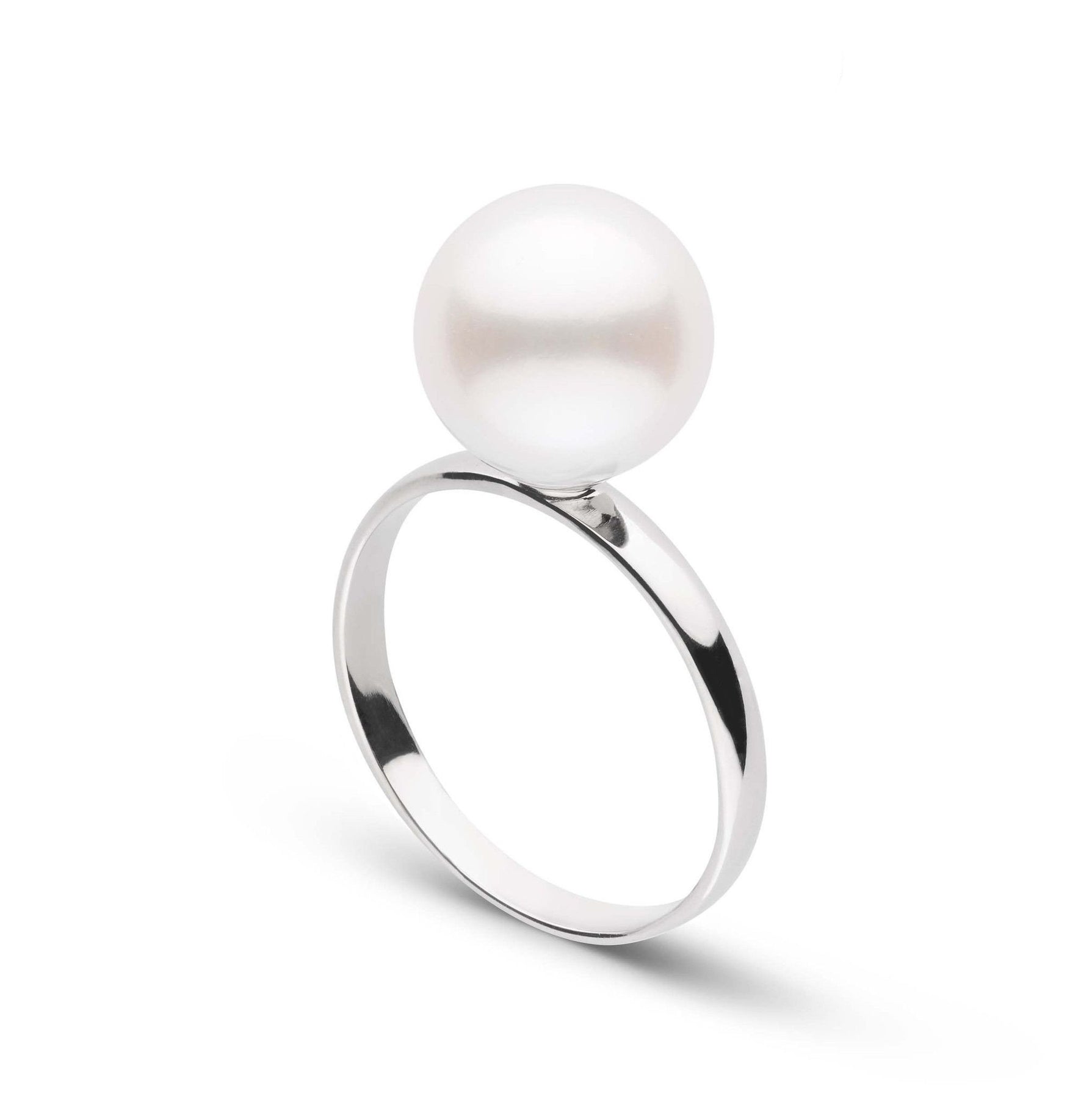 This classic ring design draws attention to the beauty of the freshadama grade 9.0-10.0 mm freshwater pearl. The sharp luster of the pearl is emphasized as it sits nested securely in the 2.5 mm gold band.