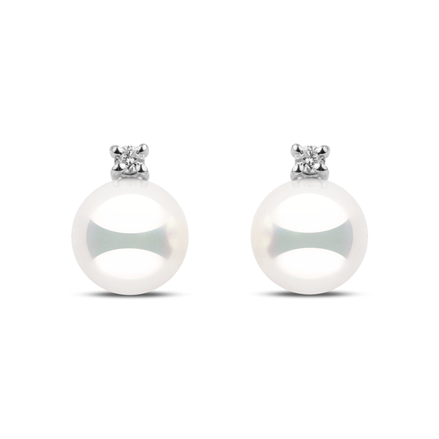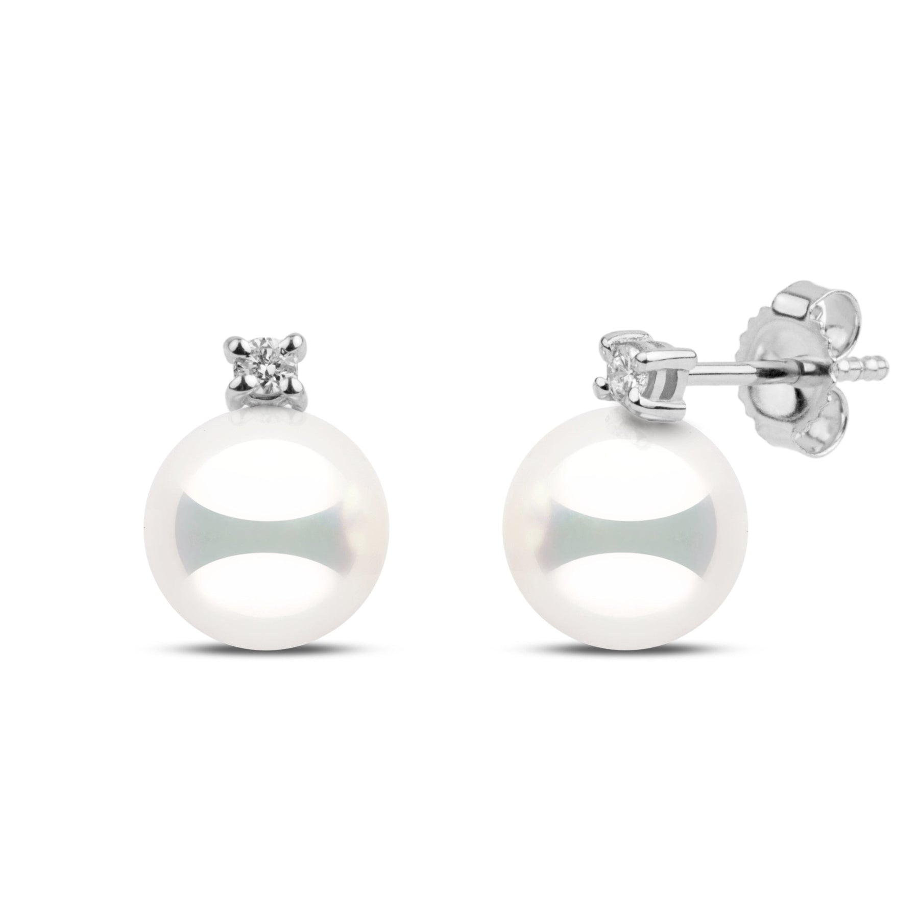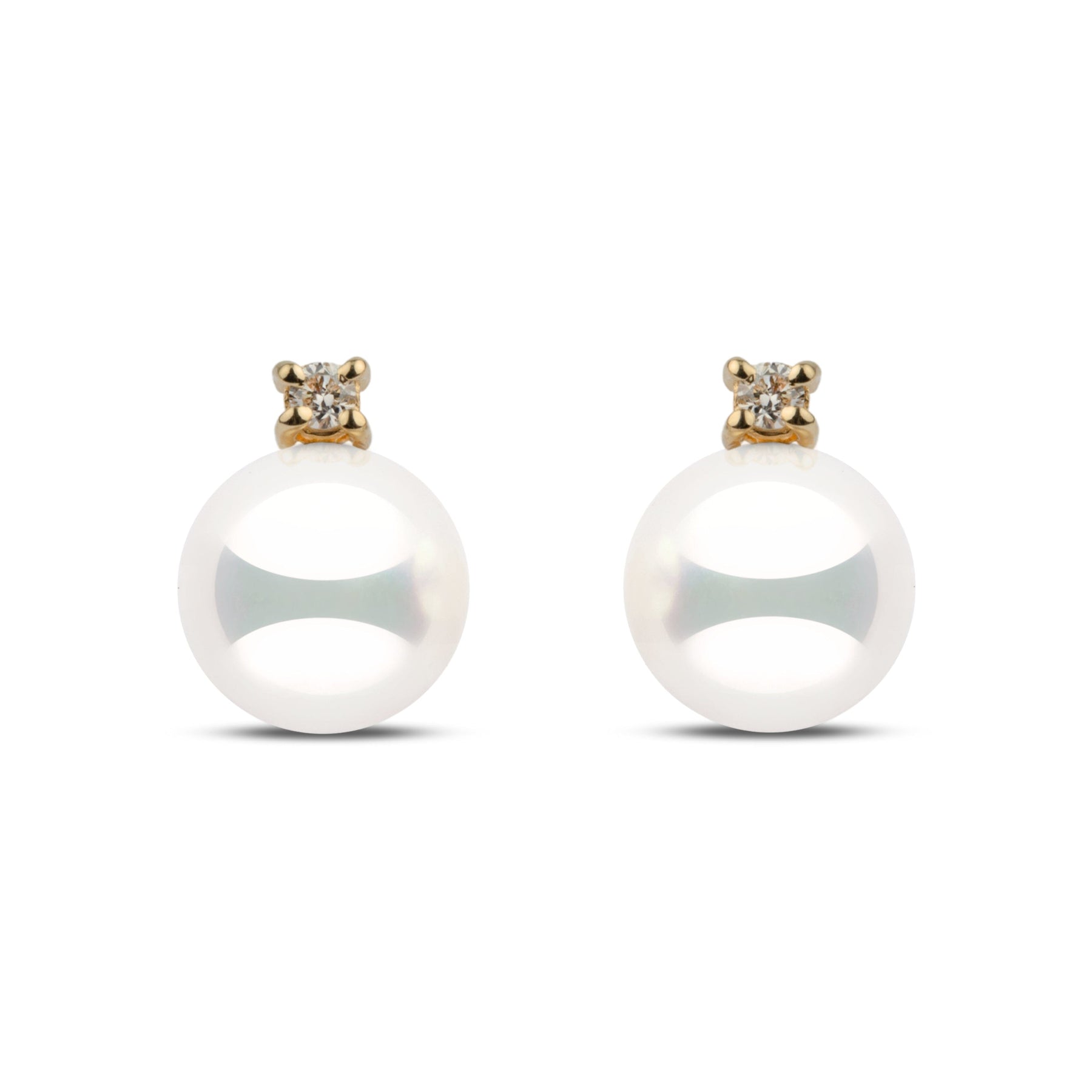 These earrings from our Starlight Collection feature 7.0–7.5 mm natural white Hanadama akoya pearls. Perfectly round with radiant luster and clean, bright surfaces, each pearl is accented with round brilliant-cut G-VS1 diamonds totaling 0.06 cttw, set in solid 14k gold.
