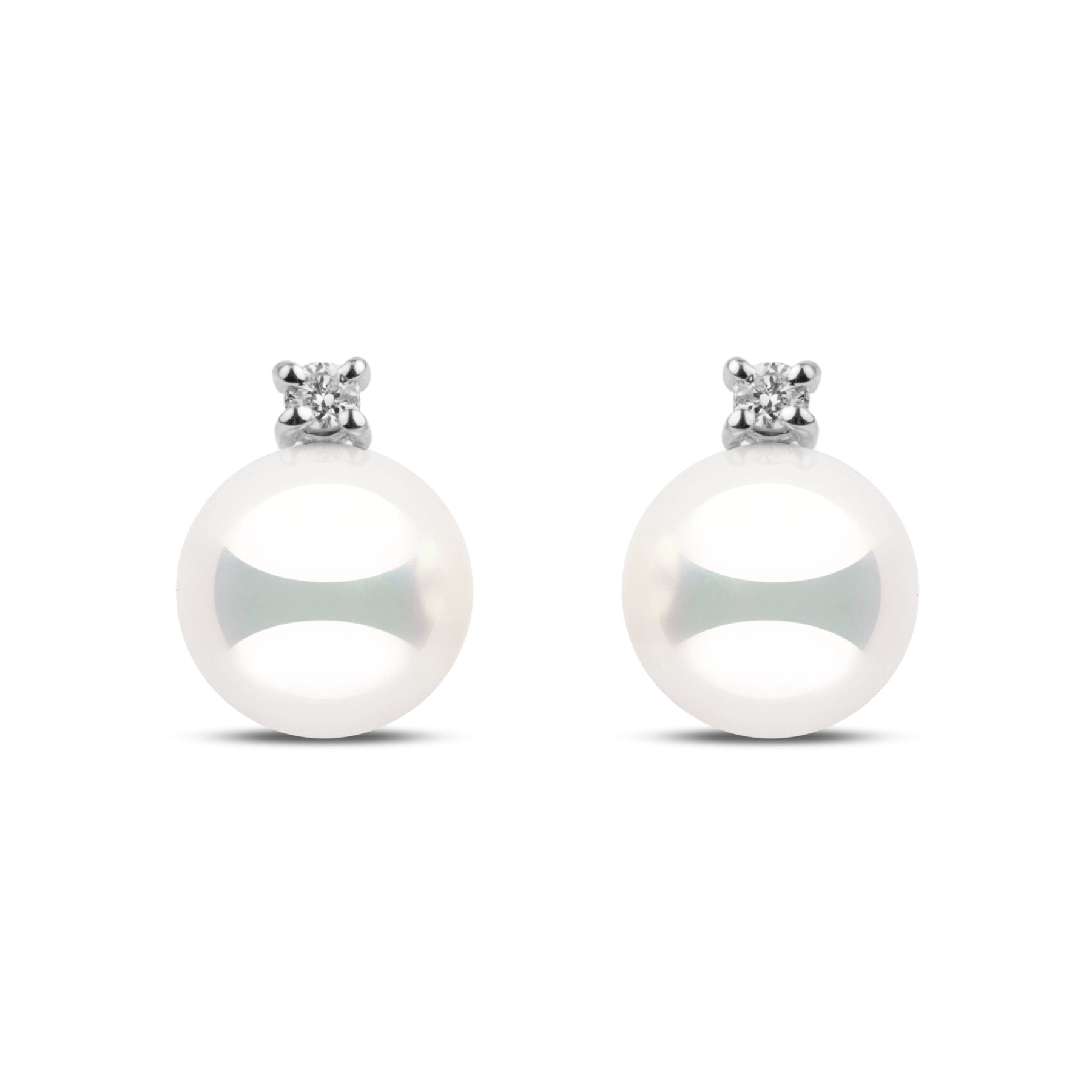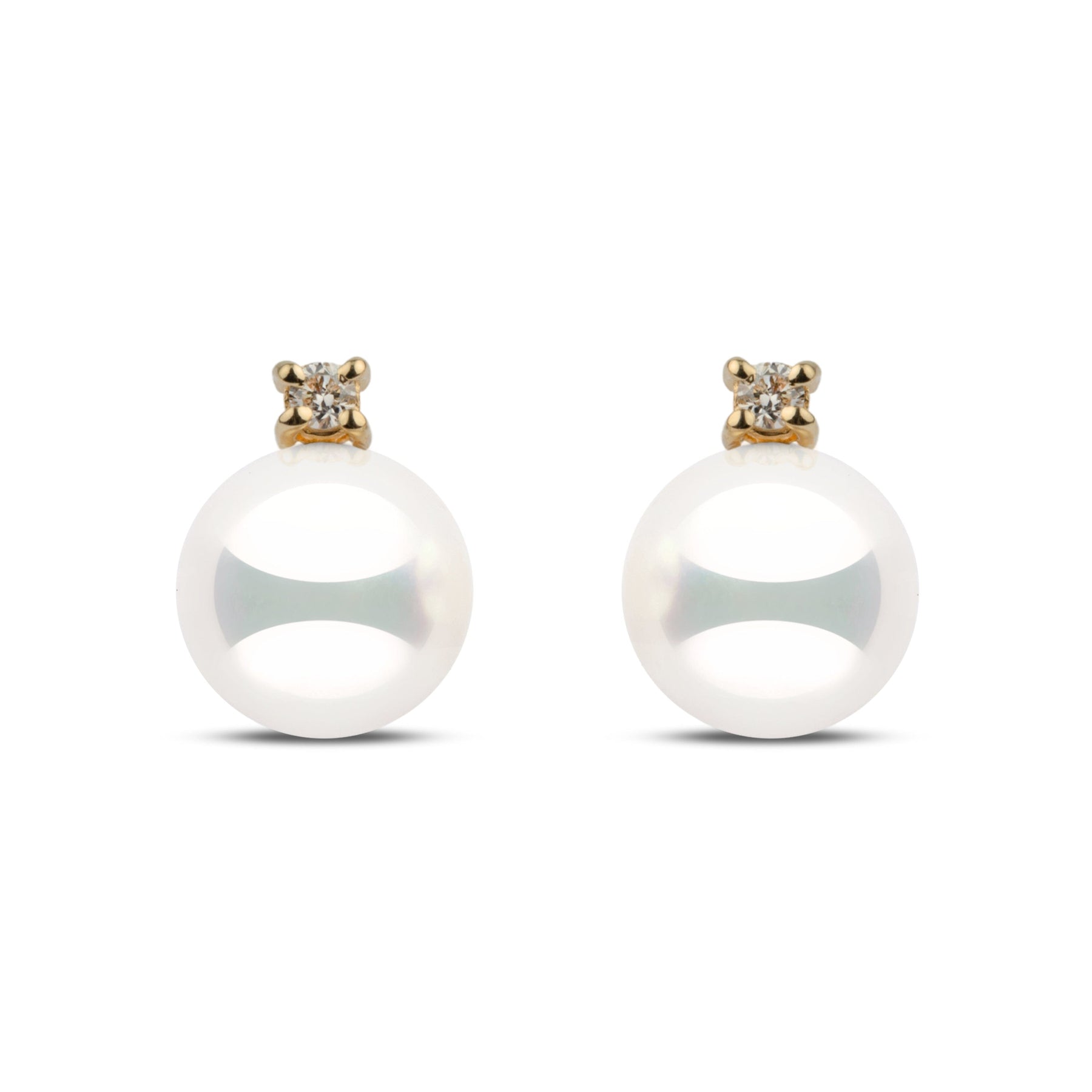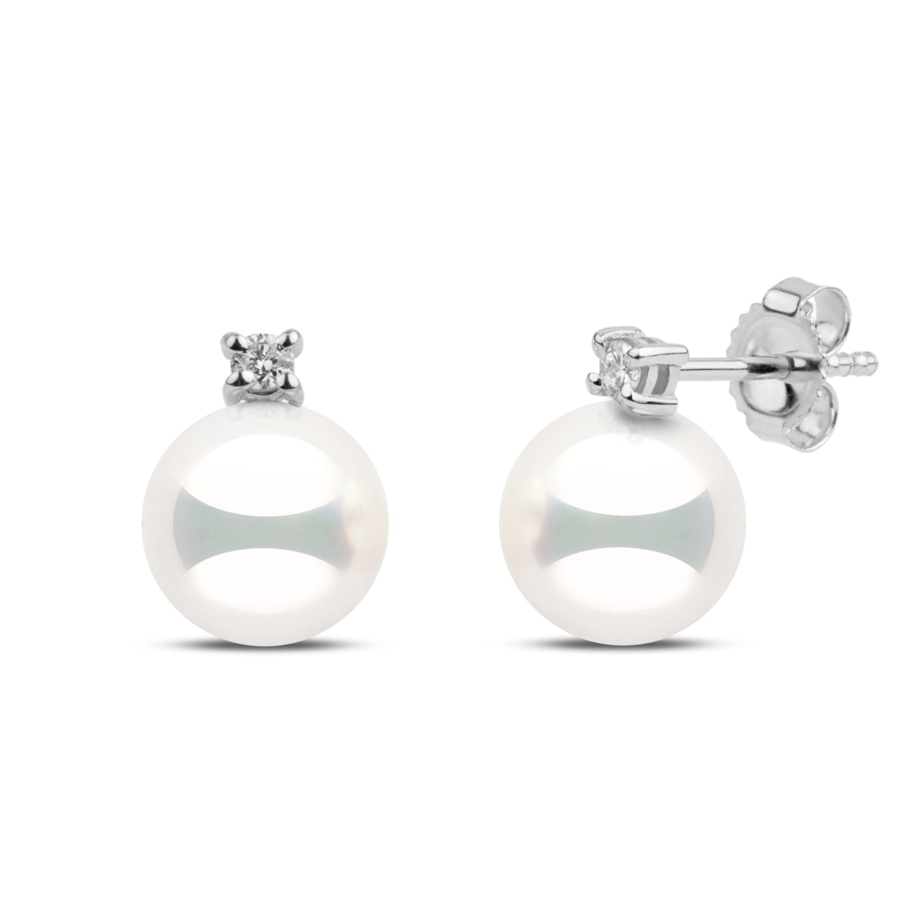 These earrings from our Starlight Collection feature 7.5–8.0 mm natural white Hanadama akoya pearls. Perfectly round with radiant luster and smooth, bright surfaces, each pearl is accented with round brilliant-cut G-VS1 diamonds totaling 0.06 cttw, set in solid 14k gold.