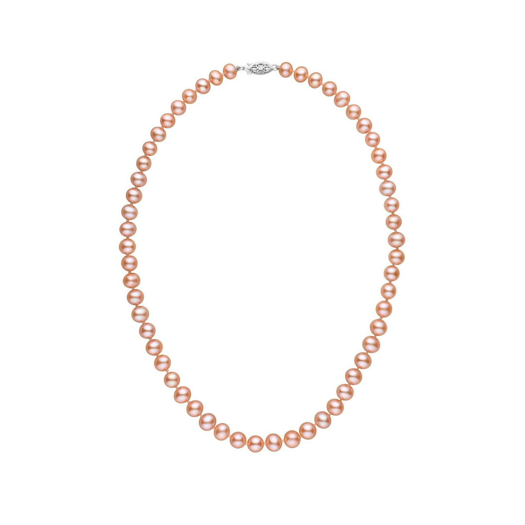 Freshwater pearls are one of the few varieties that grow in natural shades of pastel colors, typically ranging from light pink to dark lavender. We select pink pearls for this collection that sit in the range of pink to peach.