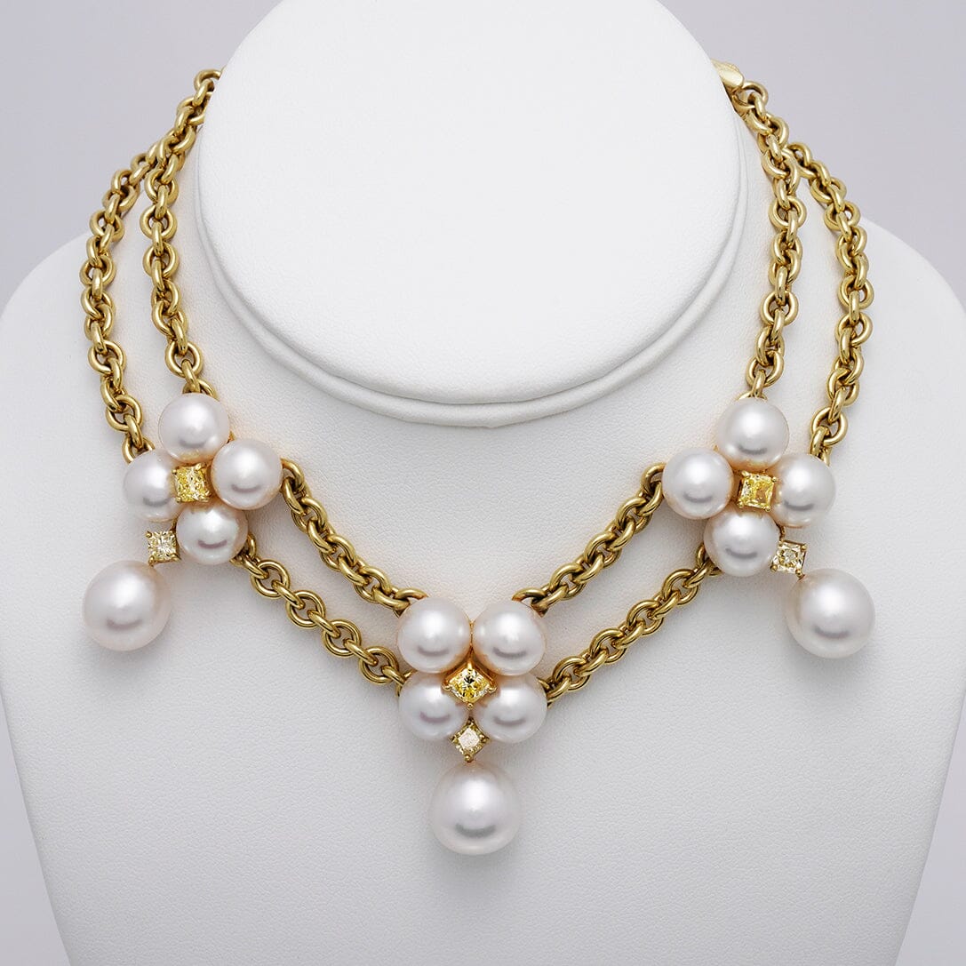 13.9–15.3 mm white South Sea pearl and yellow diamond collar necklace