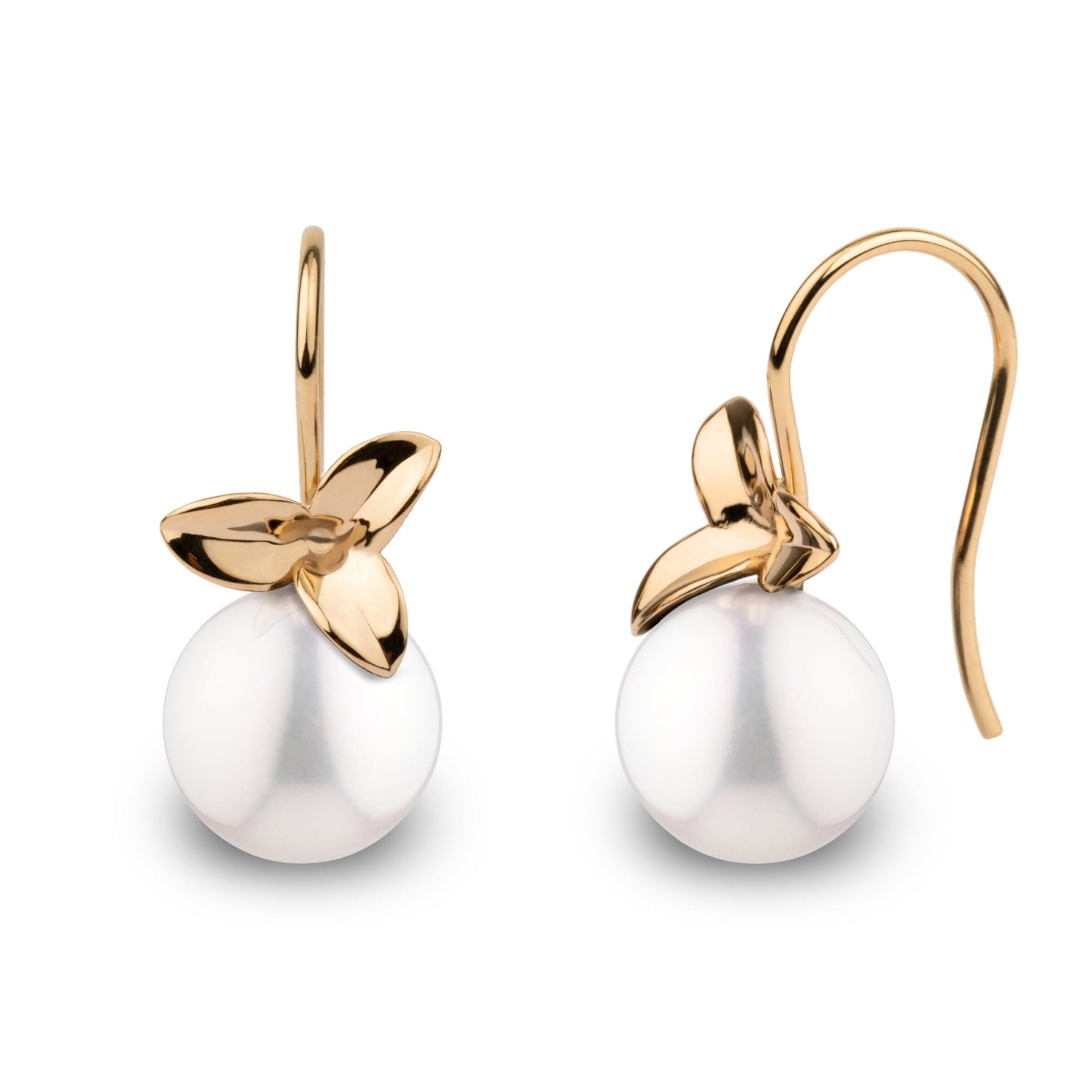 Timeless and refined, our Blossom Earrings highlight the classic beauty of White Freshadama pearls in a delicate floral design. Handcrafted in solid 14-karat gold, each earring holds a perfectly matched 8.5-9.0 mm pearl—prized for its bright white color, luster, and round shape.
