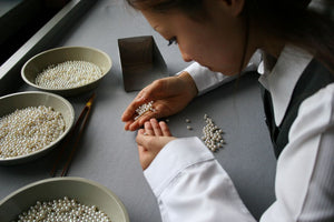 Production today is almost entirely in Japan, with smaller farms in China, Australia, and Vietnam. Pearl Paradise works exclusively with Japanese suppliers and imports all our akoya pearls from Kobe, Japan. We travel to Kobe two to three times each year to select pearls directly.