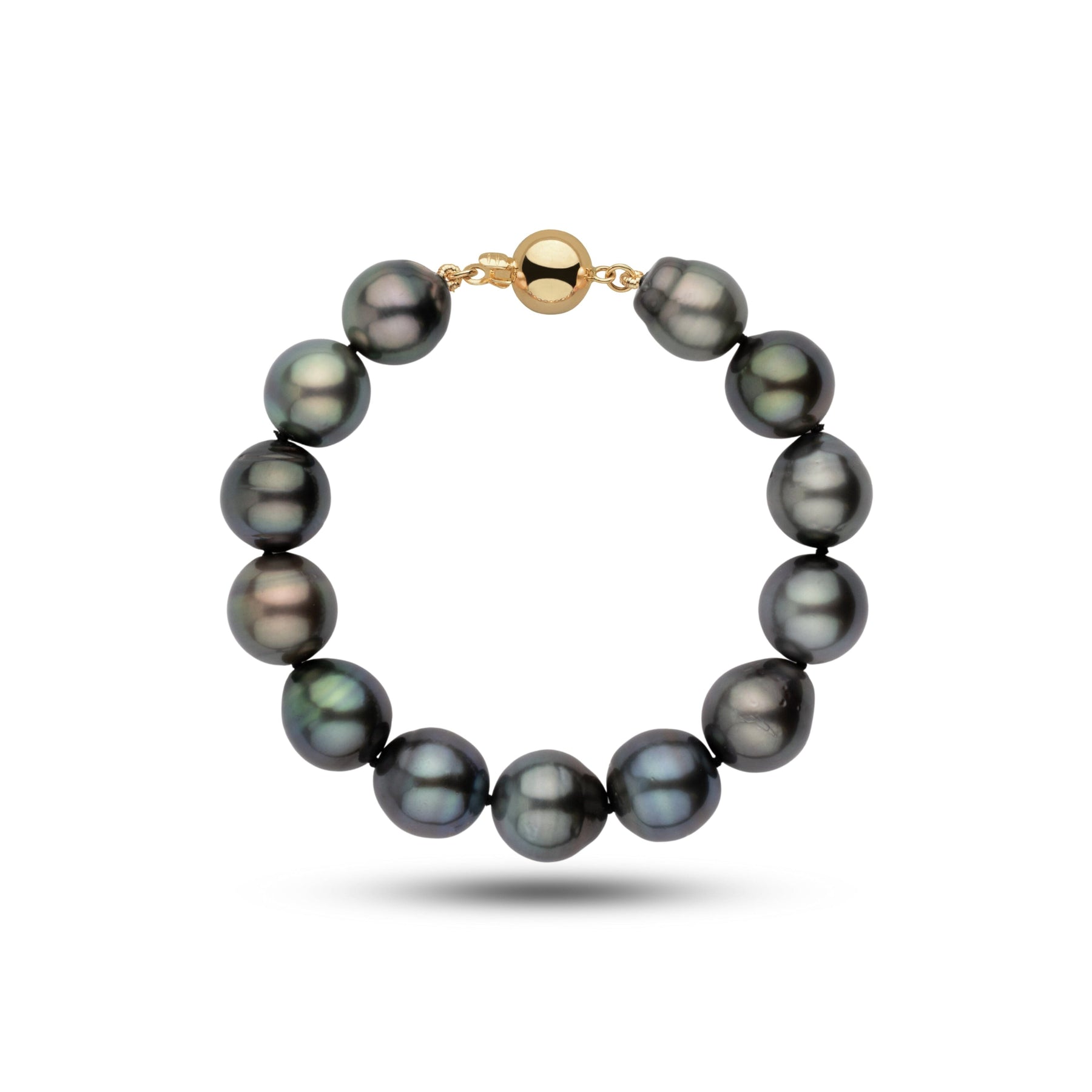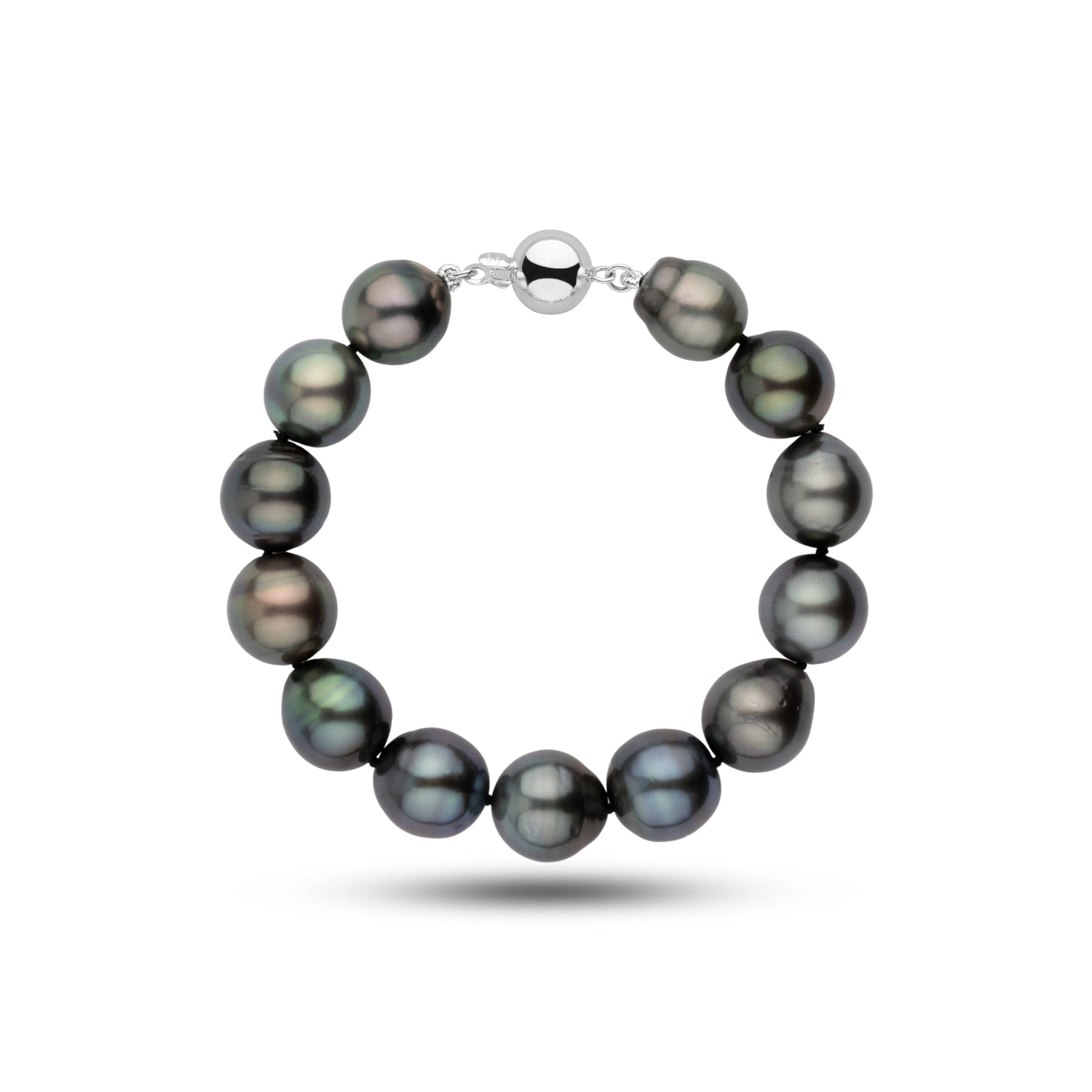 This one-of-a-kind bracelet is composed of drop, AA+ quality Tahitian pearls measuring 11.2-12.8 mm in diameter and approximately 7.5 inches in length including the clasp.
