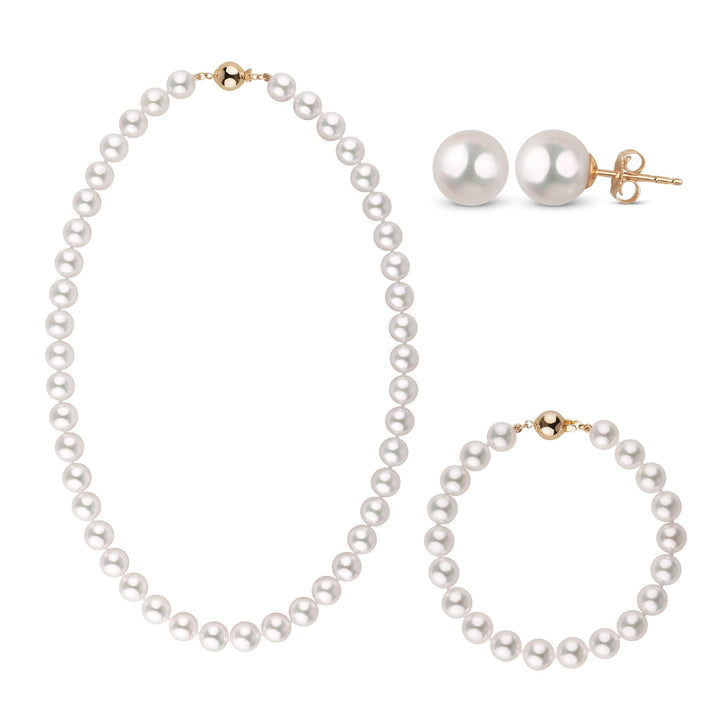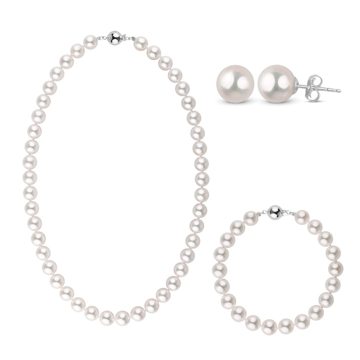 Luxurious in both size and quality, this 8.5-9.0 mm AAA quality white akoya pearl set represents the finest in traditional pearl elegance. Rare in this size and selected to meet our highest standards, these pearls are as striking as they are sophisticated.