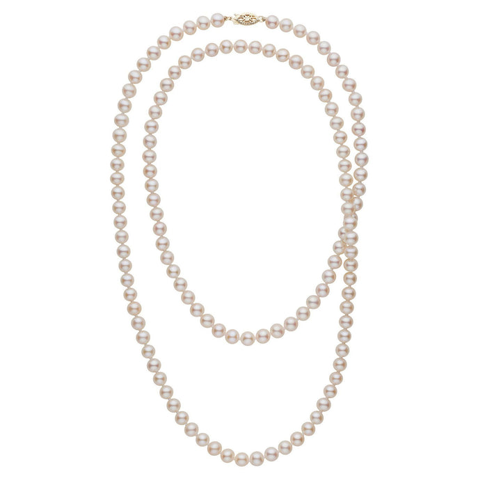 This long pearl necklace is composed of round freshwater pearls that were hand-selected for their shape, brilliant shine and smooth surfaces. The pearls are perfectly matched - a true feat considering the number of pearls needed to create such a long necklace.