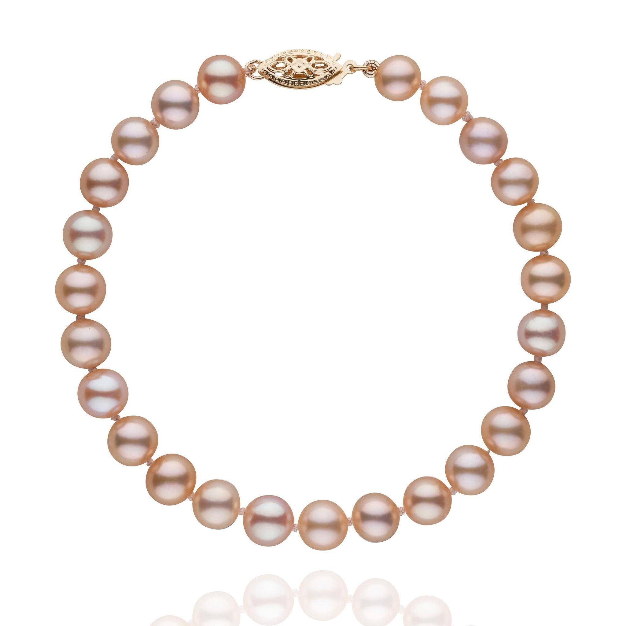 If you are looking for something easy and simple for yourself or a small gift, then this may be the perfect piece for you. This lovely bracelet is composed of 6.5-7.0 mm quality freshwater pearls in a natural, pink to peach body color. The color is completely natural and unique to this type of pearl.