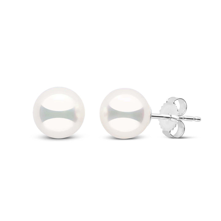 These earrings are crafted with our finest 7.0–7.5 mm Hanadama akoya pearls, perfectly matched for size and beauty. Their luminous luster, round shape, and smooth, bright surfaces create a look of timeless elegance. Each pearl is mounted on solid 14k gold posts with secure friction backs.