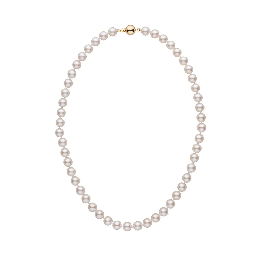 7.0-7.5 mm White Akoya AA+ Pearl Necklace Yellow Gold