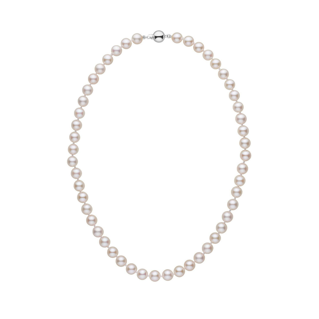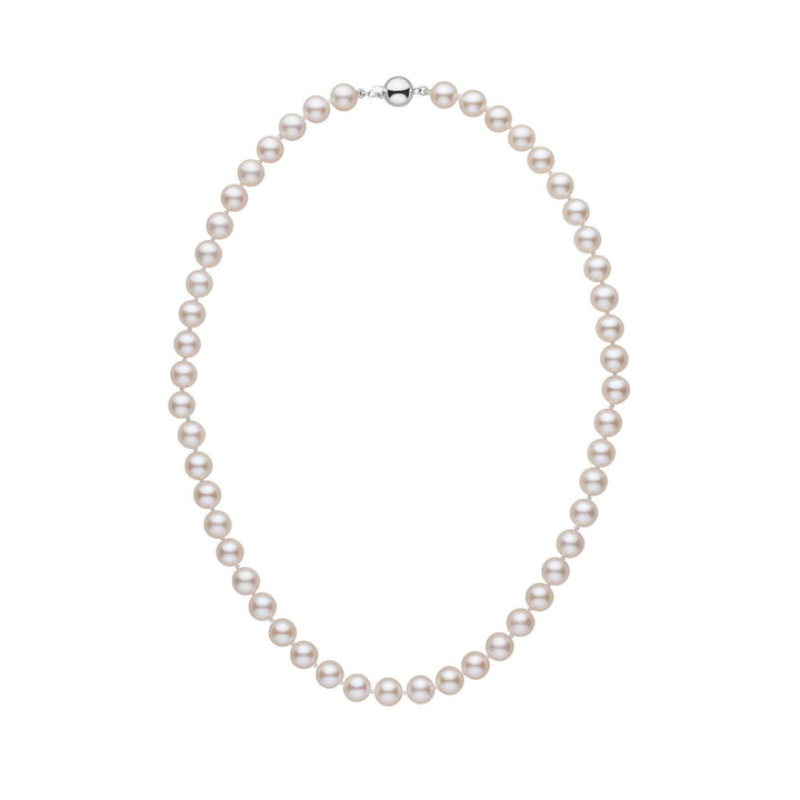 7.0-7.5 mm White Akoya AA+ Pearl Necklace White Gold