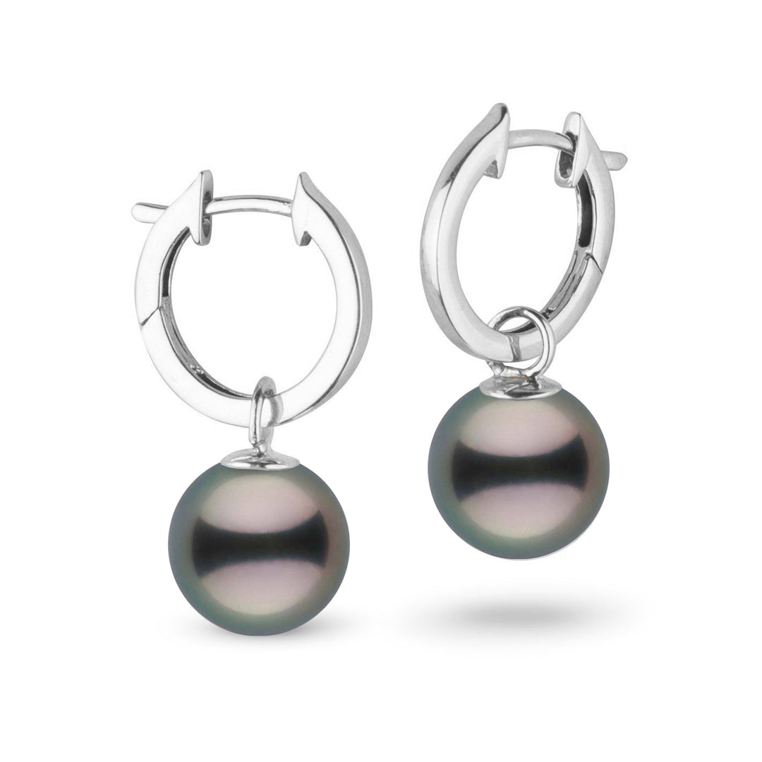 These lovely pearl earrings feature 9.0-10.0 mm Tahitian pearls. These simple 14 karat gold huggie hoops are the perfect everyday style..