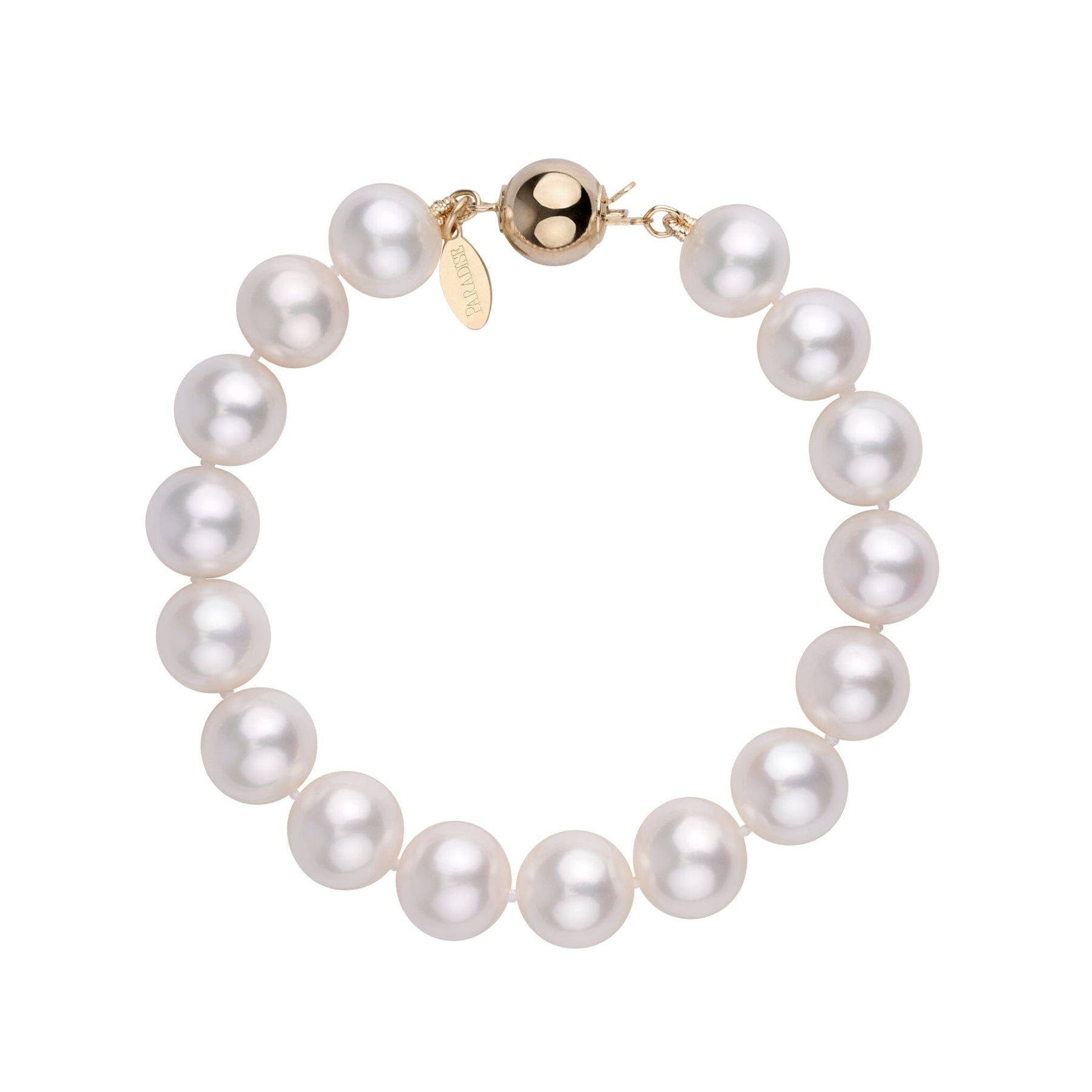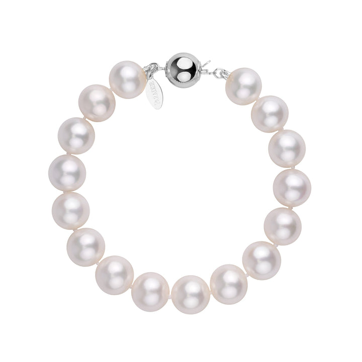 This 9.0-10.0 mm pearl bracelet is composed of our trademark freshadama pearls. Freshadama pearls represent less than one percent of all the pearls harvested. The pearls are almost perfectly round with sharp luster and smooth skin.