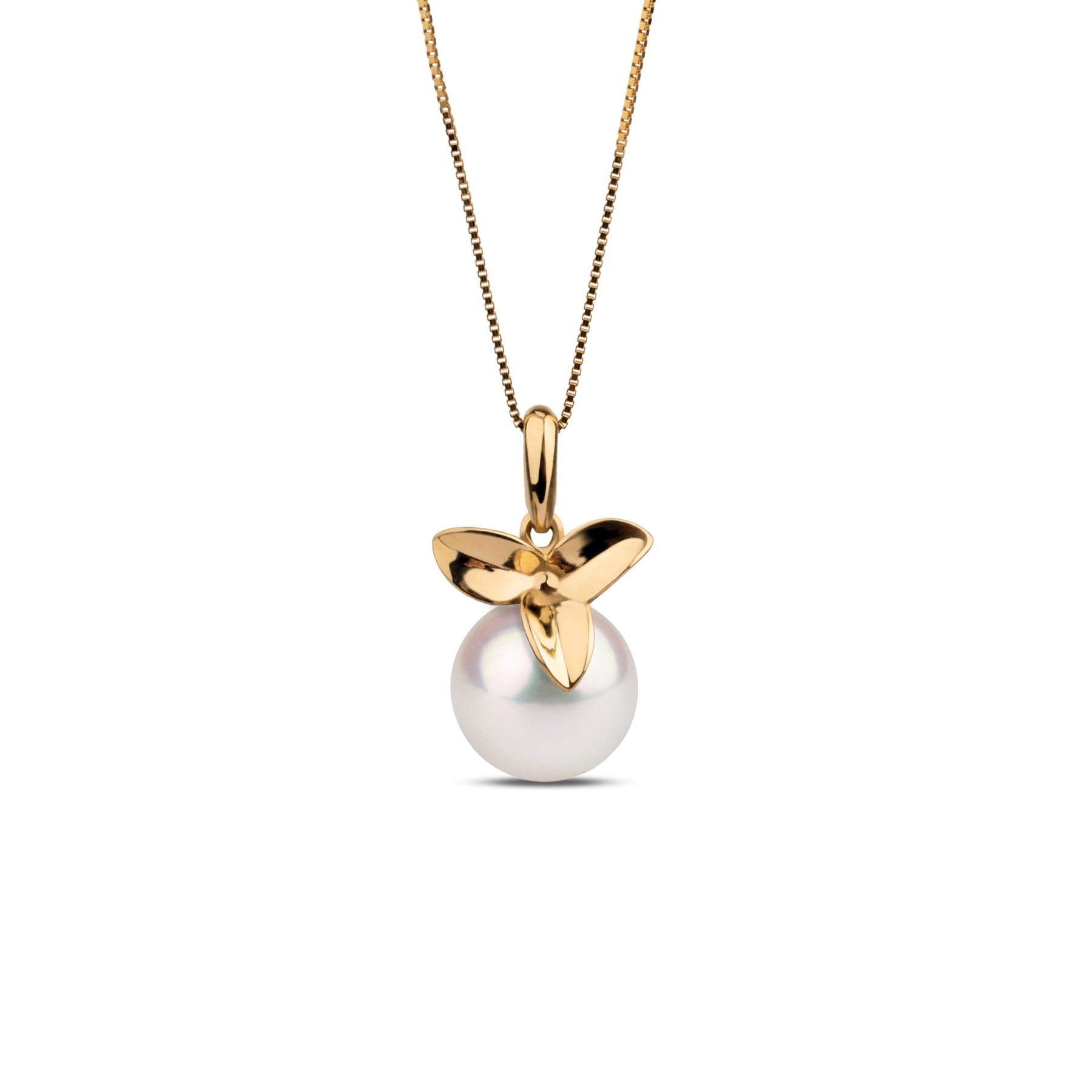 A celebration of refined beauty, our Blossom Pendant showcases the timeless elegance of Japanese Akoya pearls in a graceful, floral-inspired setting. The design is handcrafted in solid 14-karat gold and cradles a luminous 8.5–9.0 mm pearl, chosen for its near-perfect roundness, smooth surface, and mirror-like luster.