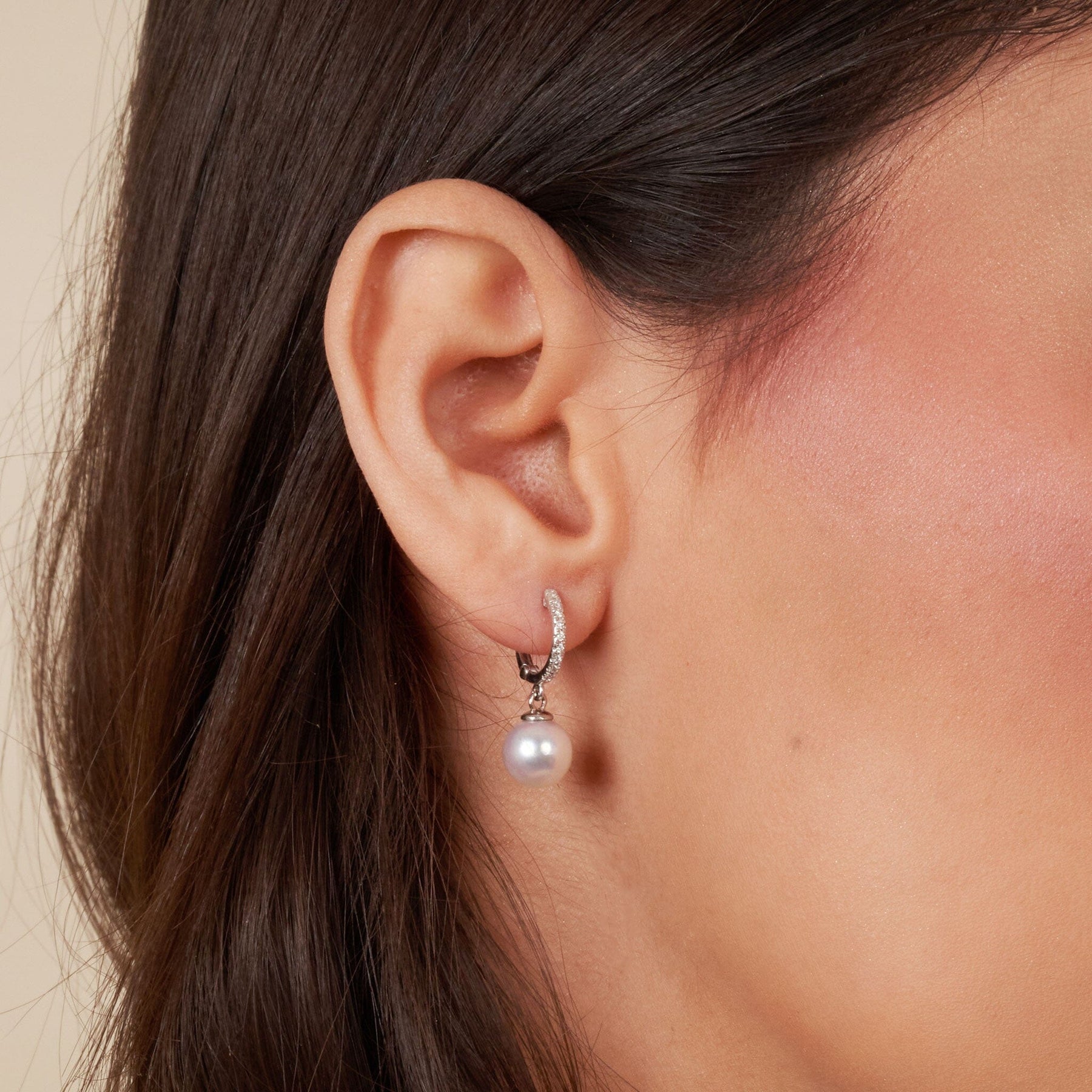 Spice up your everyday routine with the Diamond Small Hoop Earrings. Fit for any occasion, the 0.09 CTTW diamonds paired with the 8.0-8.5 mm AAA Akoya pearls are bound to make a lasting impression.