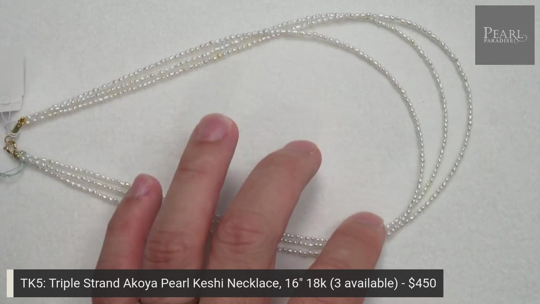 11/14 Kobe Livestream: Triple Strand Akoya Pearl Keshi Necklace, 16" 18k