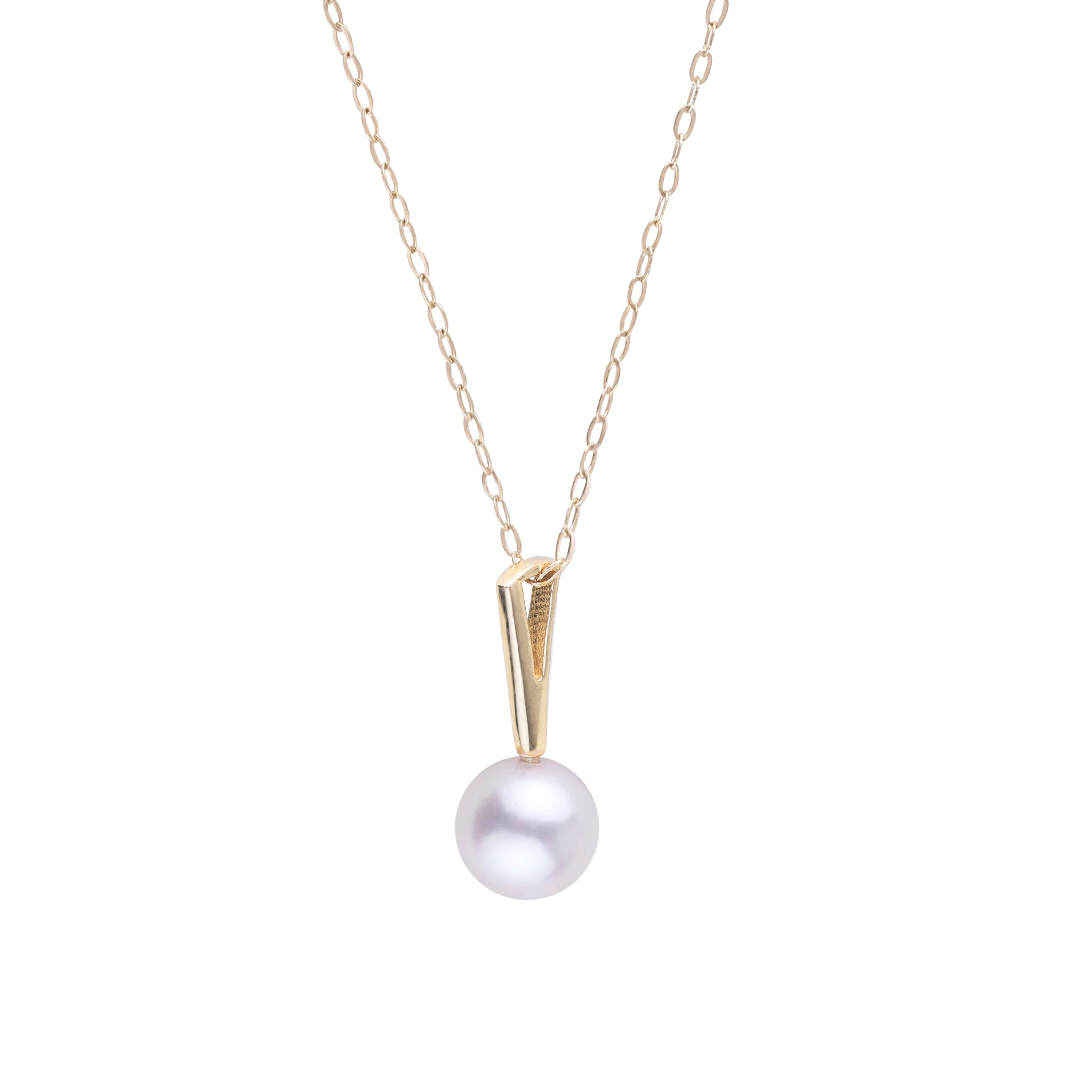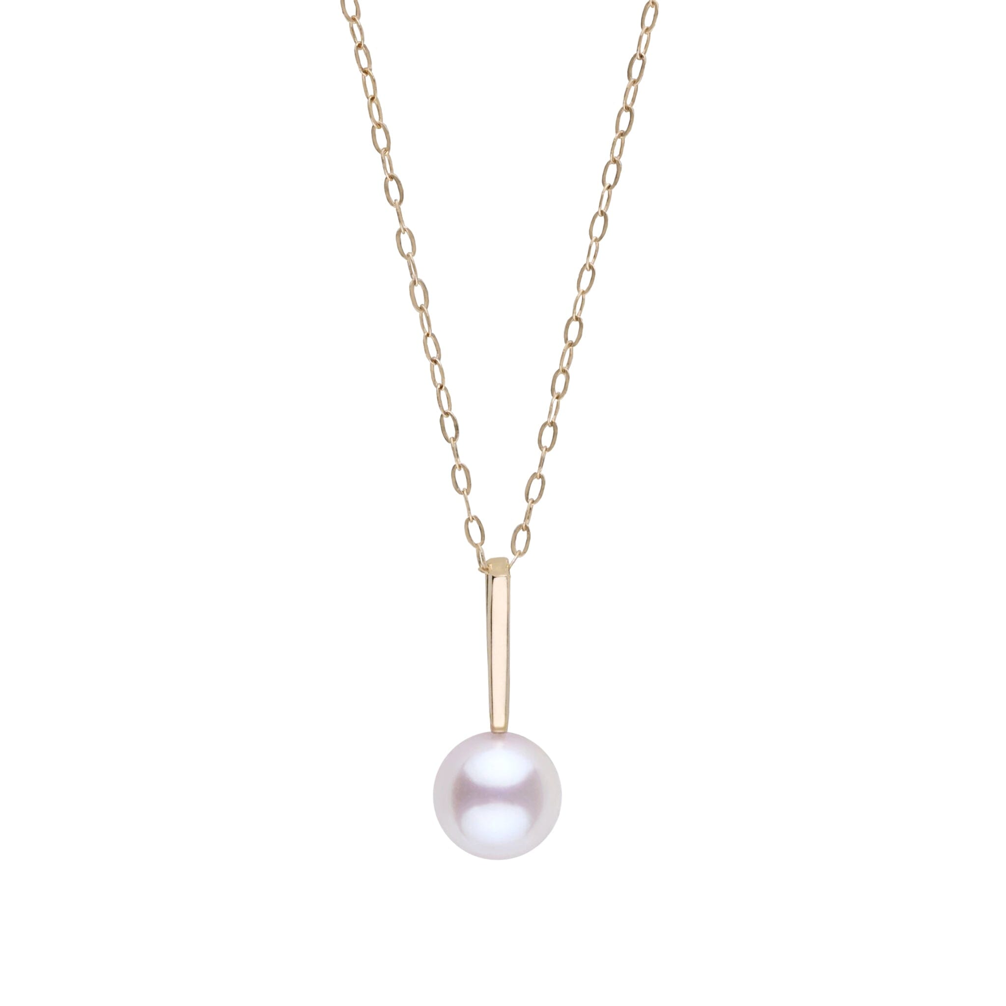 The Petite Bar Pendant is the style your jewelry box needs. The simplicity and sleek design of the 14 karat solid gold bar with the 6.5-7.0 mm akoya pearl allow you to wear it for any occasion.