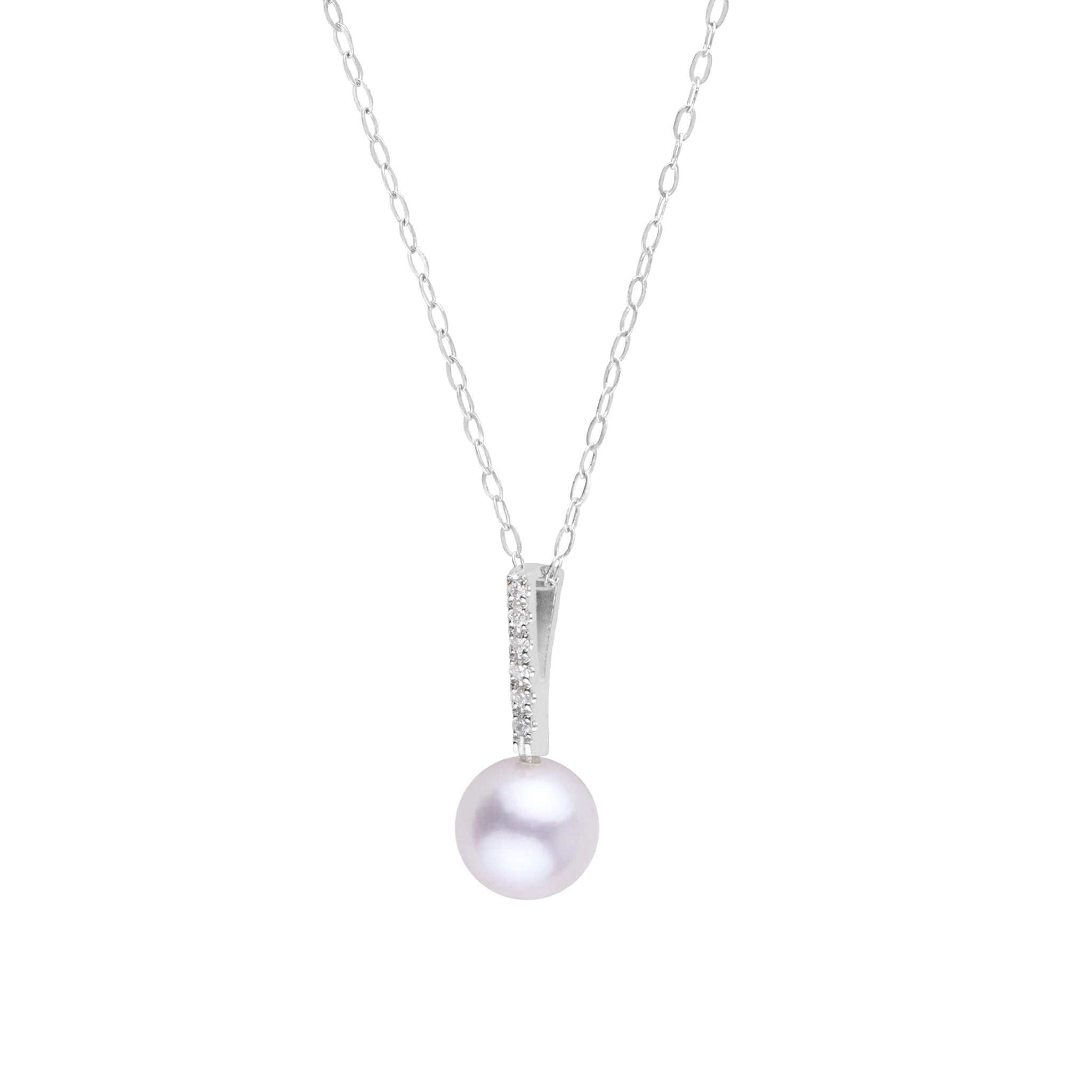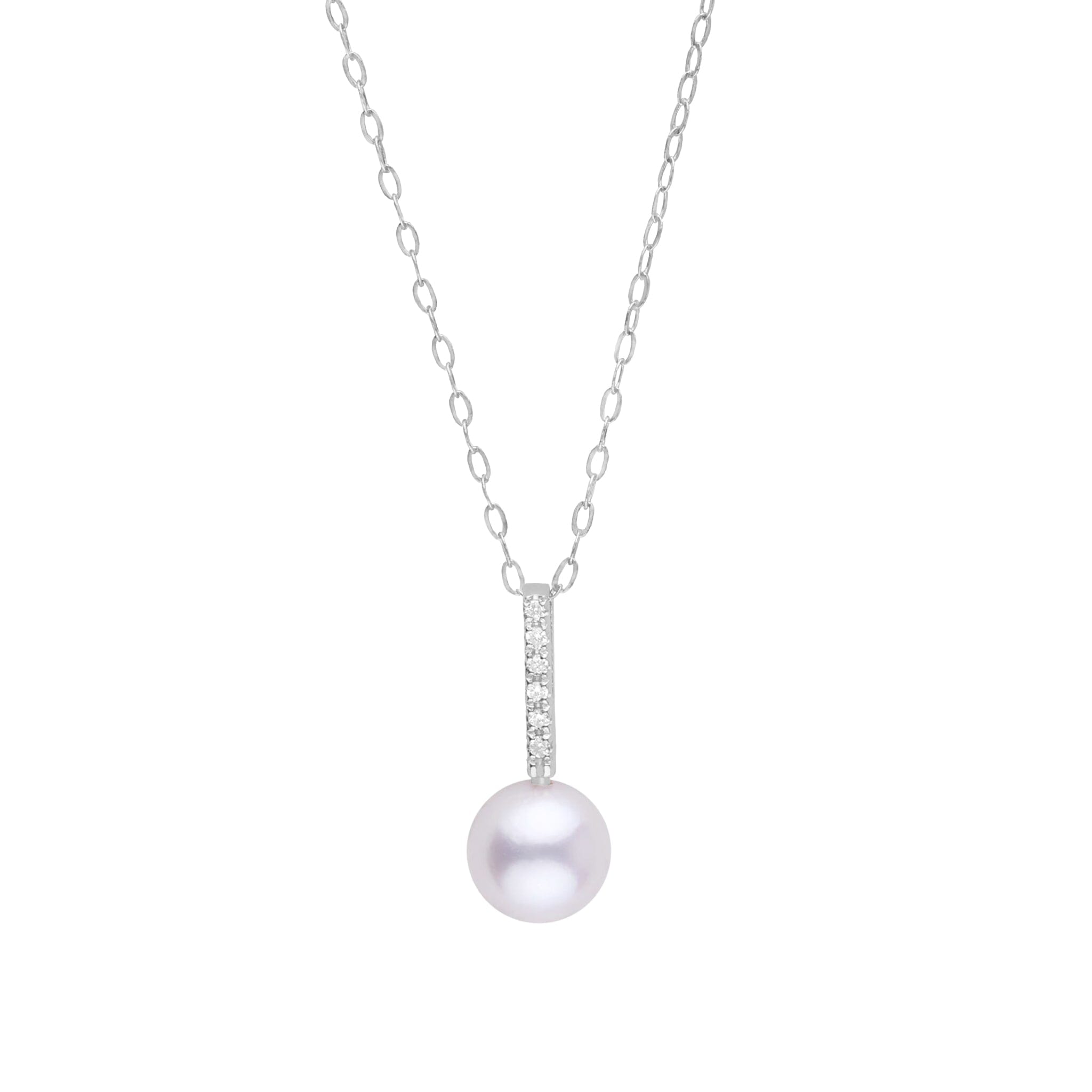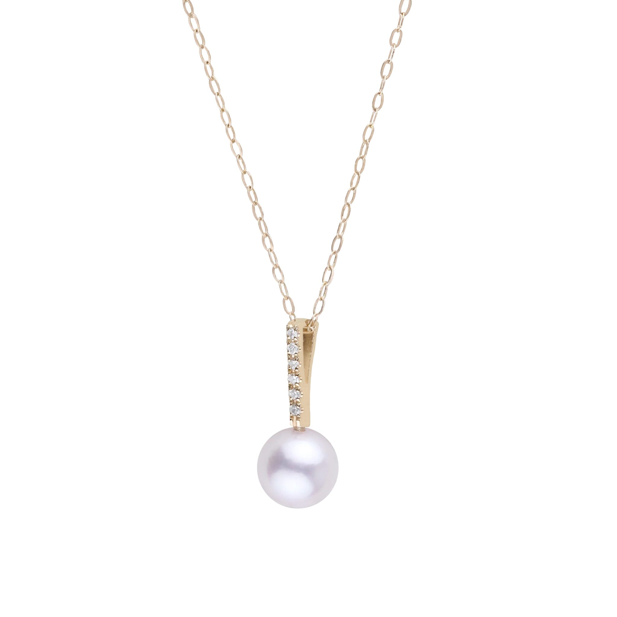 The Petite Diamond Bar Pendant is the style your jewelry box needs. The simplicity and sleek design of the 14 karat solid gold bar set with 0.07 cttw VS1-G diamonds and finished with the 6.5-7.0 mm akoya pearl allow you to wear it for any occasion.