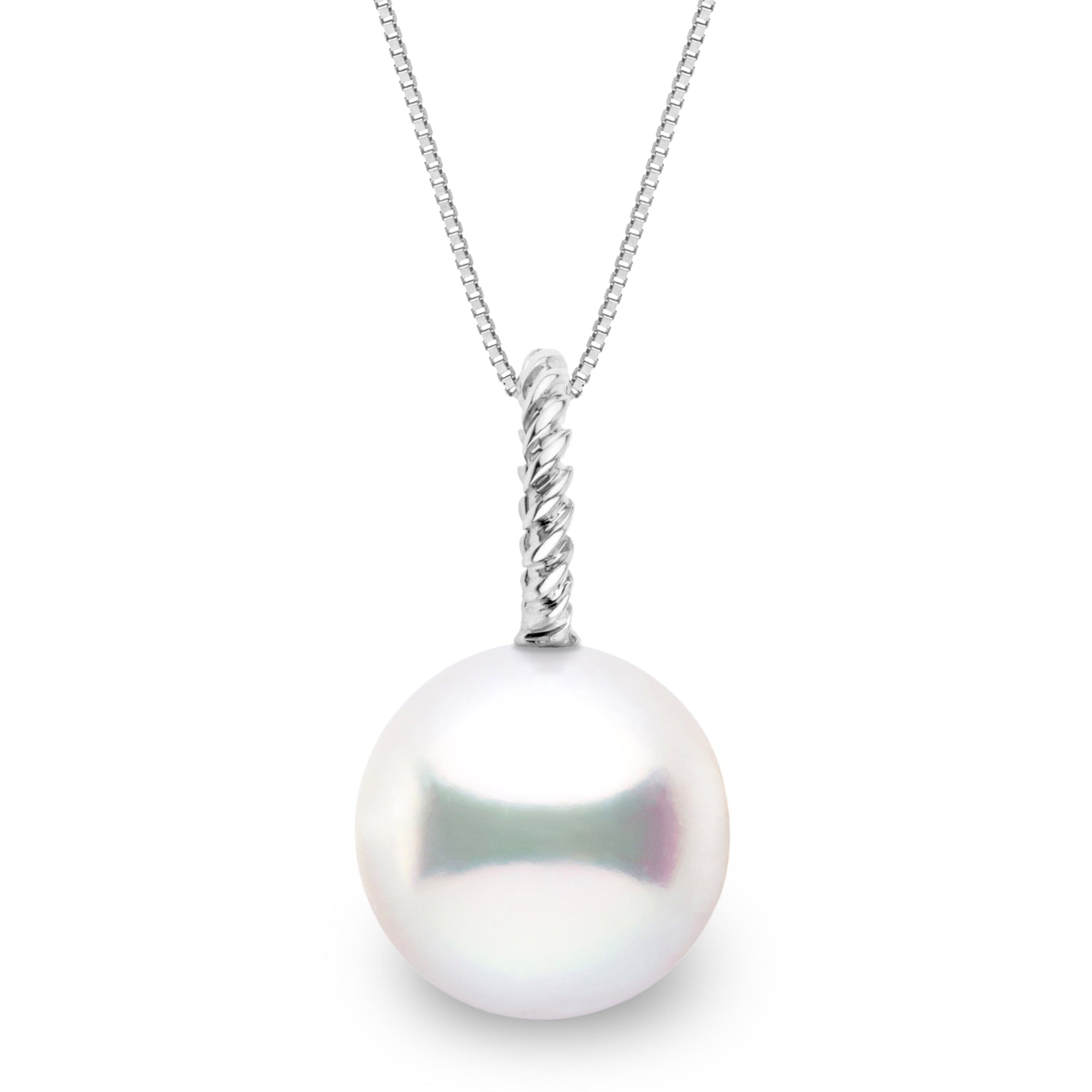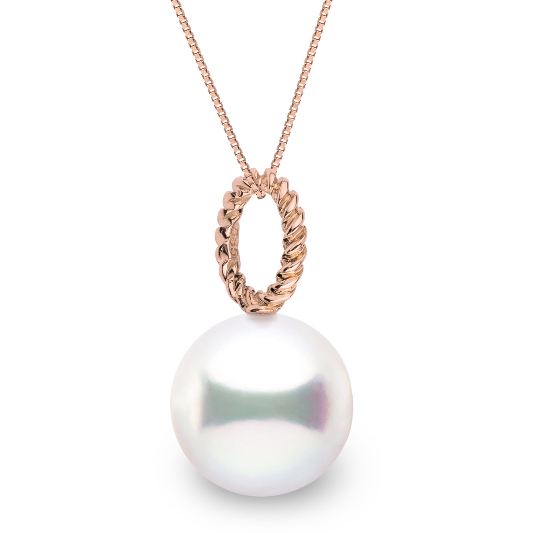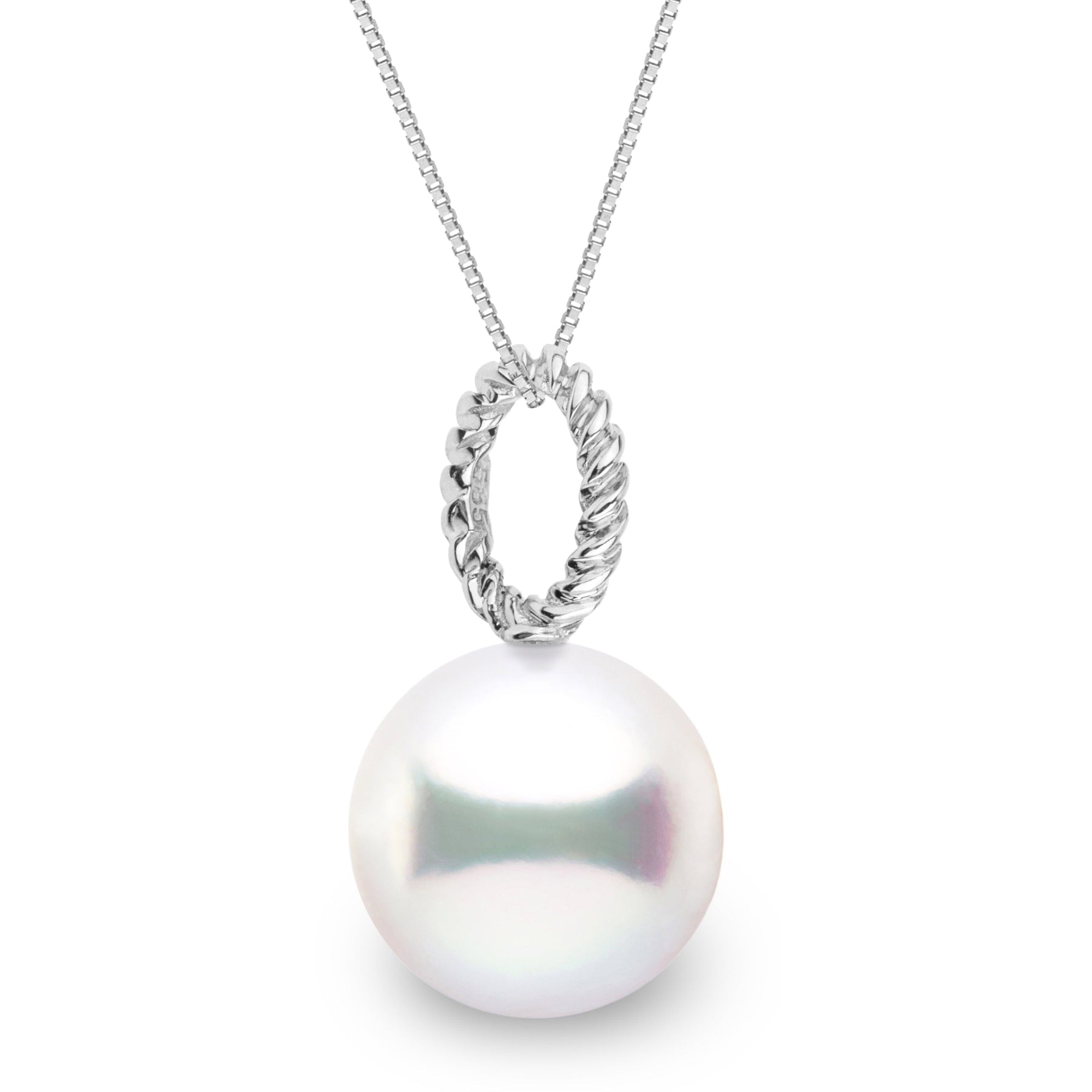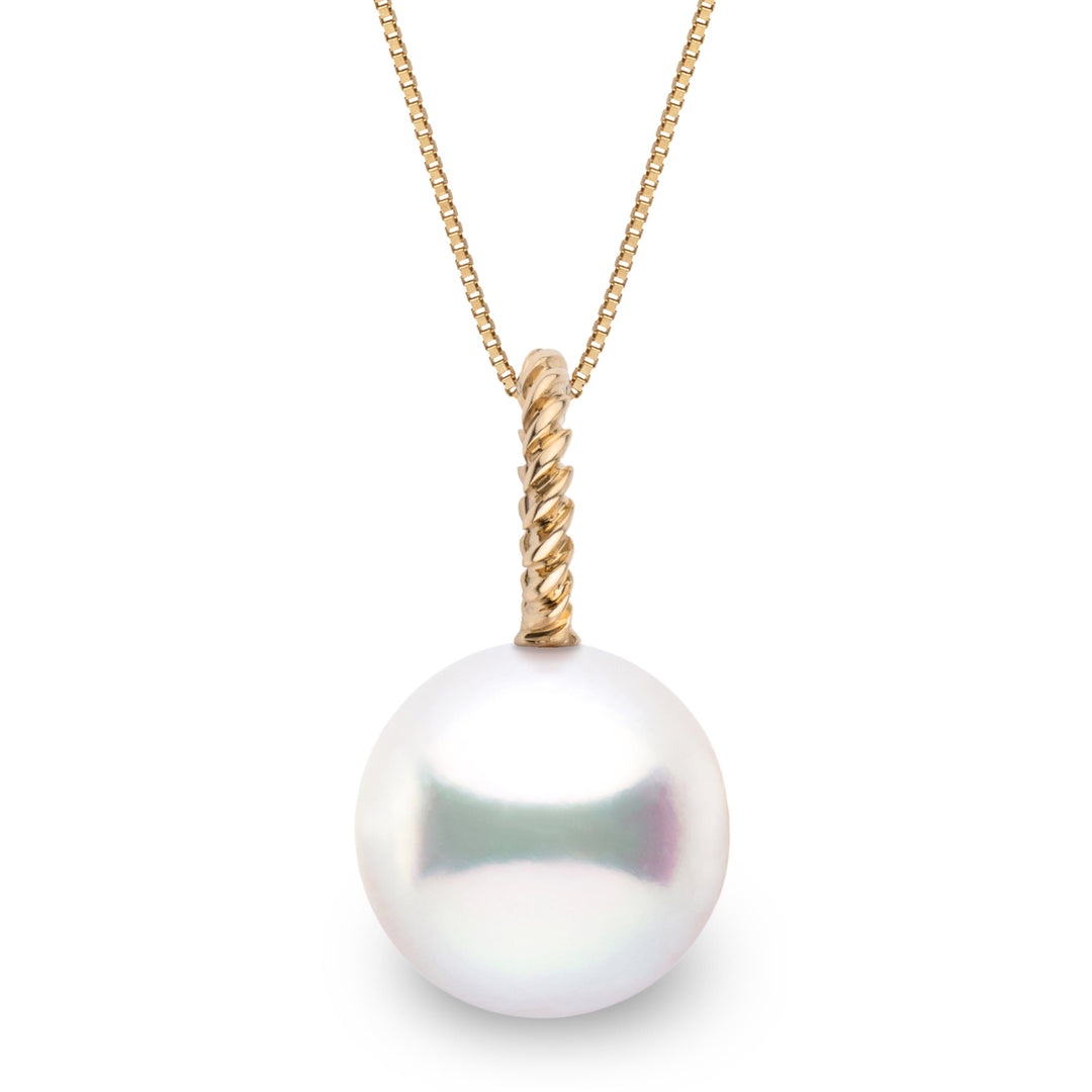 Sleek and sophisticated, the Rope Pendant reimagines classic design with a contemporary twist. The clean, sculptural lines of its rope-inspired setting offset a striking 12.0-13.0 mm AAA White South Sea pearl.