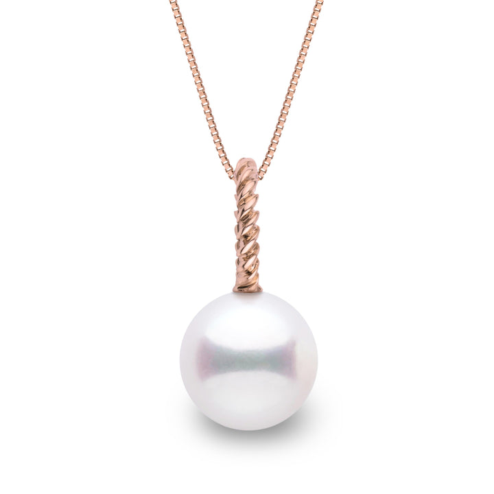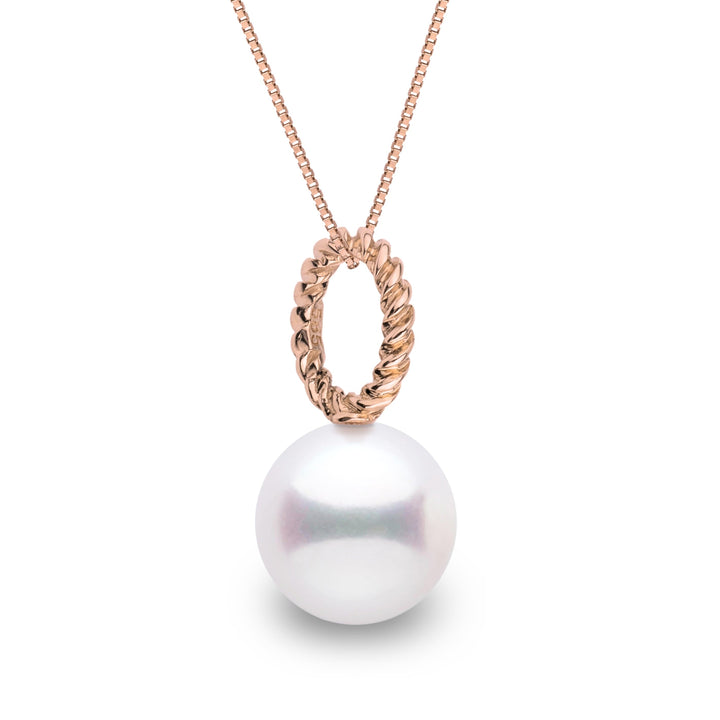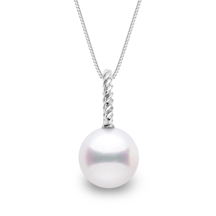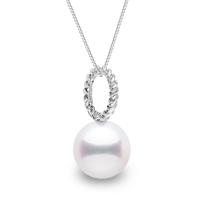 Sleek and sophisticated, the Rope Pendant reimagines classic design with a contemporary twist. The clean, sculptural lines of its rope-inspired setting offset a striking 8.5-9.0 mm AAA White Akoya pearl.
