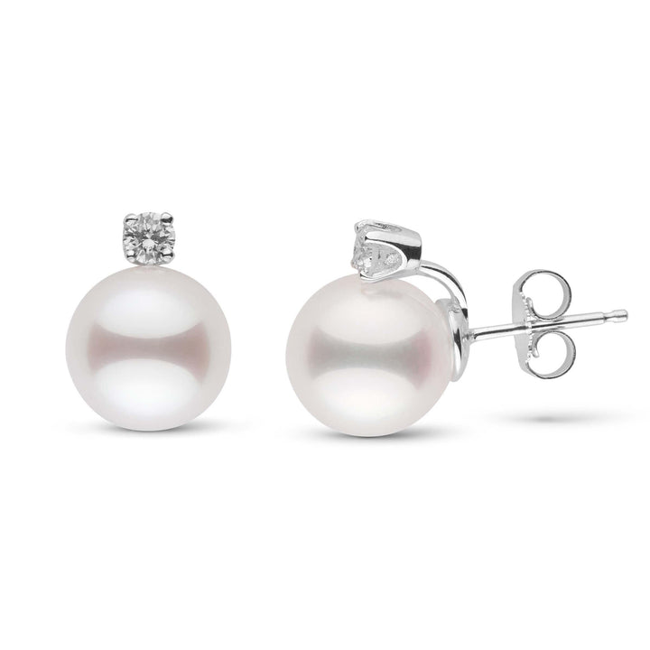 Timeless and luminous, these classic earrings feature perfectly round 9.0-9.5 mm Japanese Akoya pearls set in solid 14-karat gold. Each AAA quality pearl is hand-selected for its bright white color, smooth surface, and mirror-like luster that reflects the exceptional beauty of Japan’s cold ocean waters.