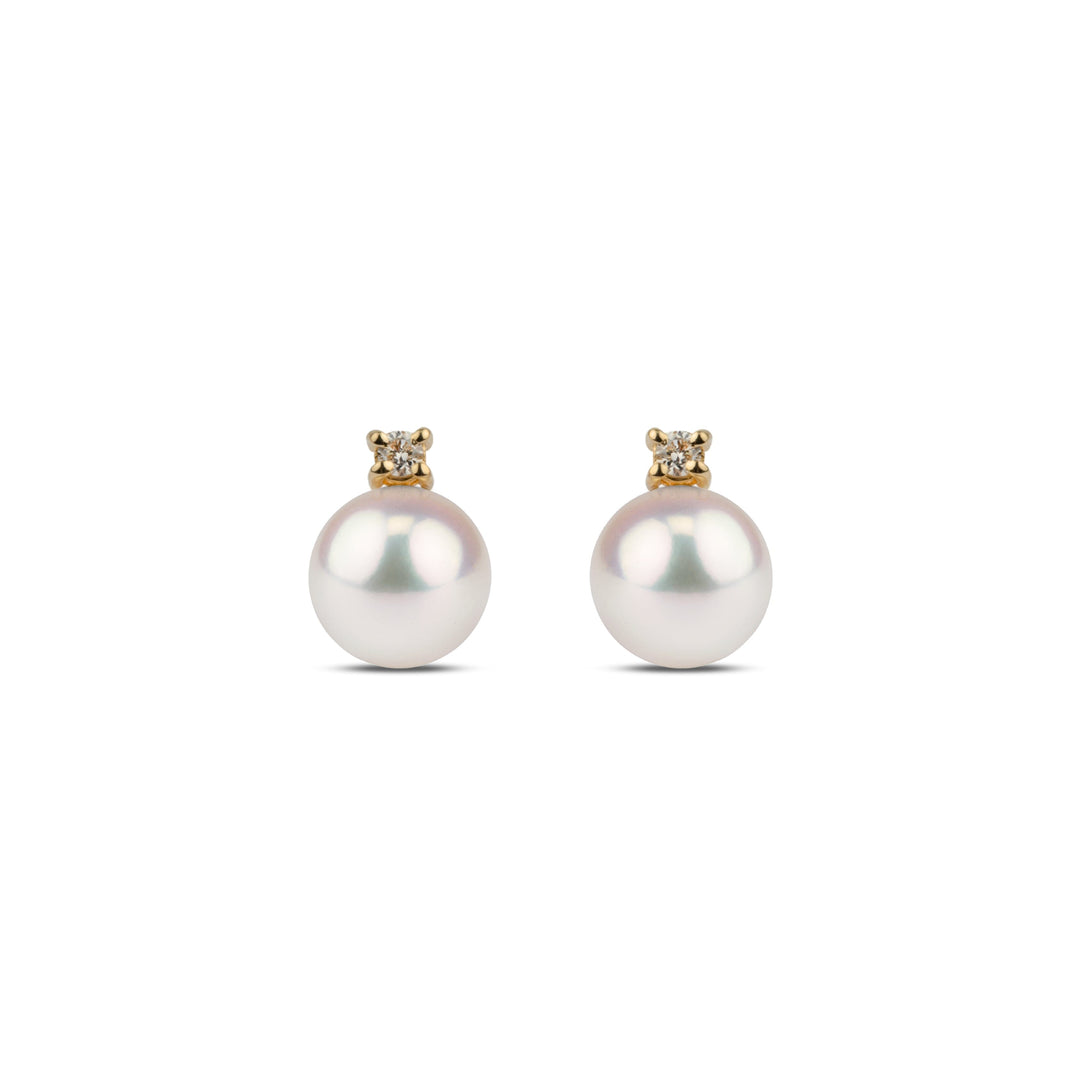 This beautiful set of earrings is comprised of two of our finest, AAA quality 7.0-7.5 mm Japanese akoya pearls. These pearls are perfectly round, with excellent luster and clean, blemish-free surface. The pearls are accented with brilliant round-cut, VS1-G quality diamonds totaling 0.06 cttw set in solid 14-karat gold.